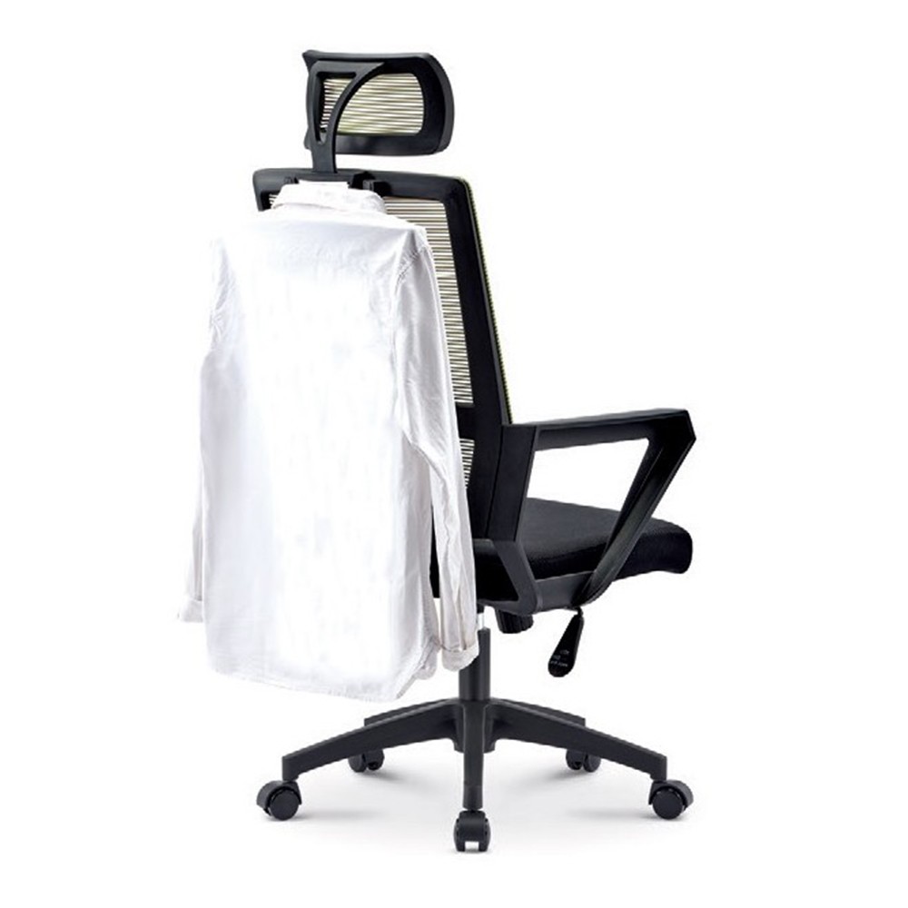 Esta fabricada con un armazón de polipropileno reforzado con fibra de vidrio en color blanco, resistente y duradero con reposabrazos y en la parte trasera del respaldo lleva incorporada una percha para que puedas dejar tu americana. Giratoria, regulable en altura, basculante y 5 puntos de rueda para garantizar un buen movimiento y adaptarla a tus necesidades.