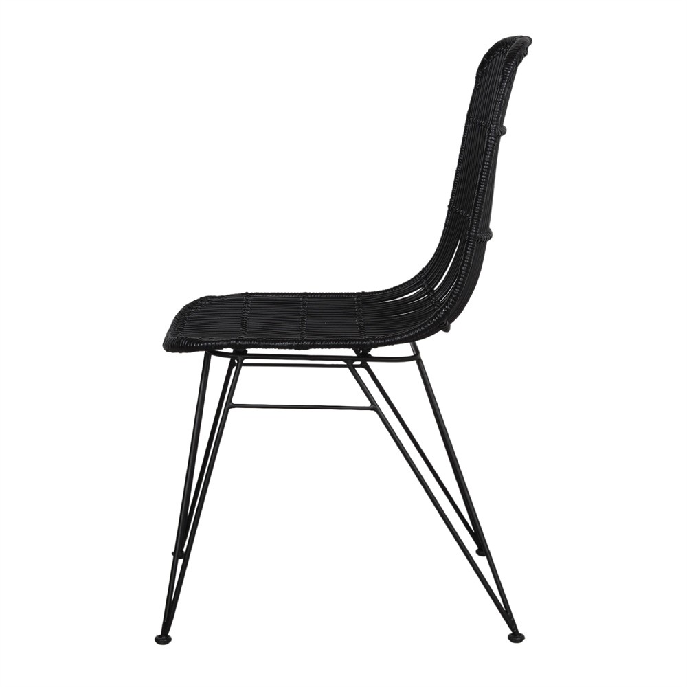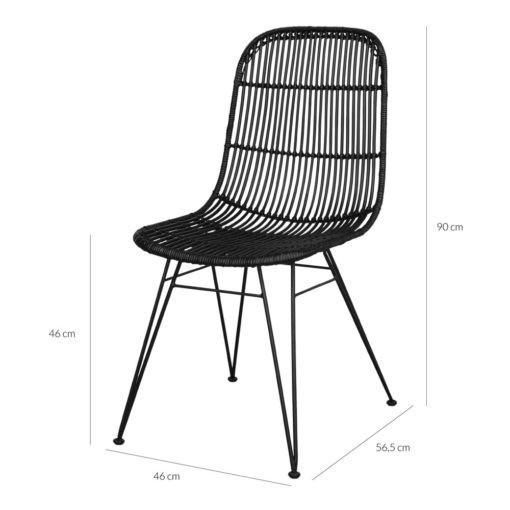 Si buscas una silla de rattan en un color poco común, te presentamos la silla de ratán AIRE con asiento y respaldo en rattan lacado en color negro.