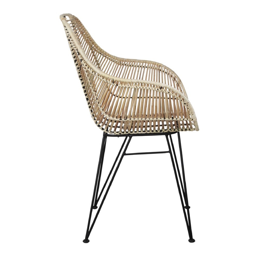 Si te interesa saber sobre los materiales de los cuales está fabricada, te hacemos saber que sobre todo se han utilizado materiales de alta calidad. Para su estructura de patas se ha precisado de metal en color negro, y para su asiento y respaldo se ha utilizado el material de ratán en su color natural.