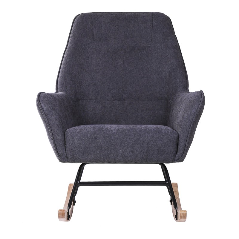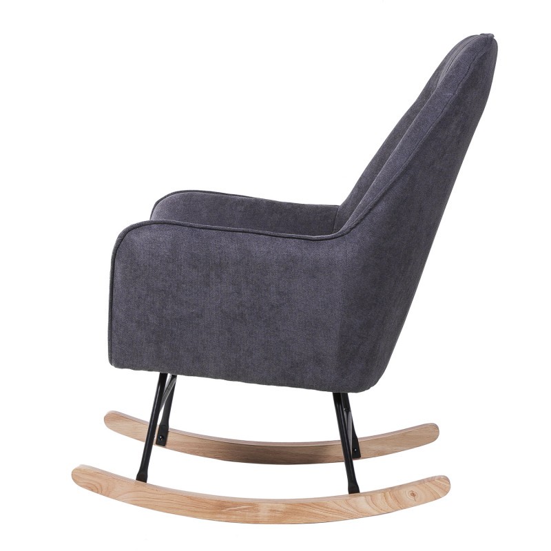 Silla mecedora de tejido gris oscuro, metal negro y madera