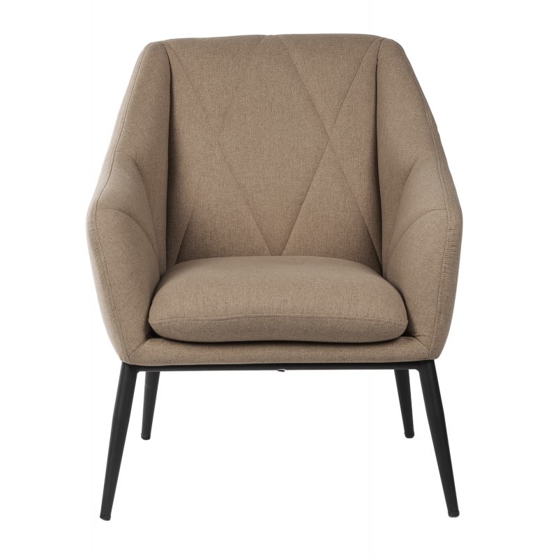 AUSTIN es un sillón en el que diferenciamos dos materiales distintos: por un lado, cuatro patas realizadas en metal acabado en negro, mientras que la estructura ha sido tapizada en tejido acabado en color beige.