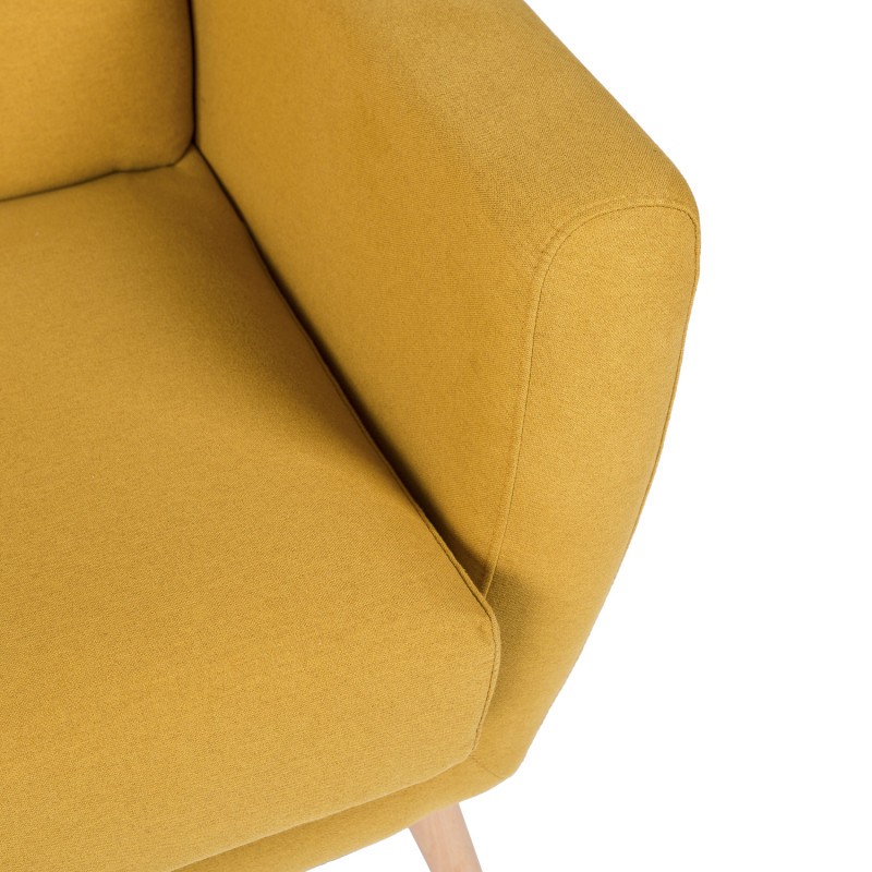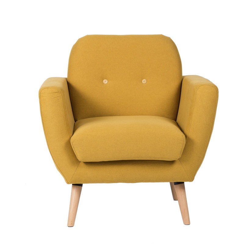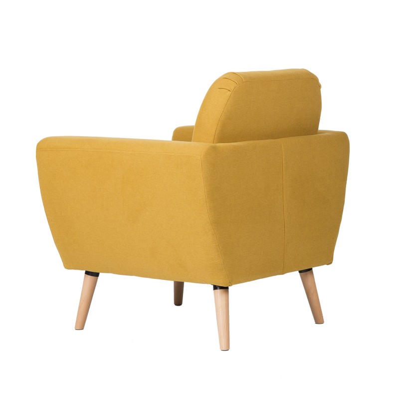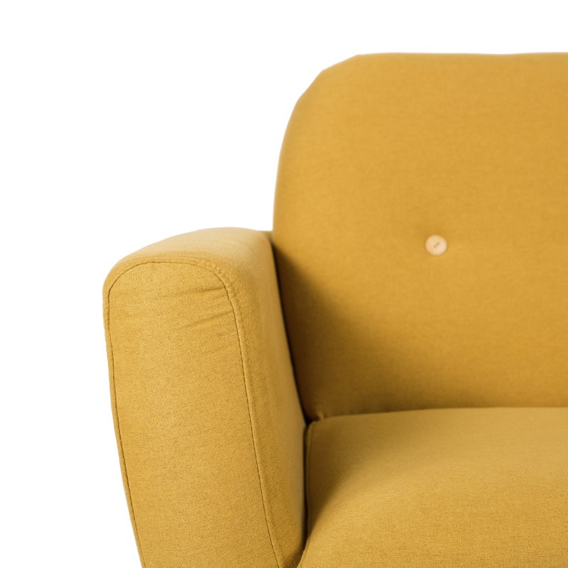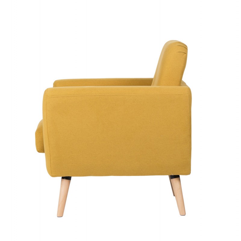 Se trata de un modelo de estilo nórdico, y que consta de un respaldo abatible y un asiento, ambos tapizados mediante tejido acabado en un llamativo color mostaza. Esta estructura se apoya sobre cuatro patas, ligeramente inclinadas, y realizadas en madera natural.