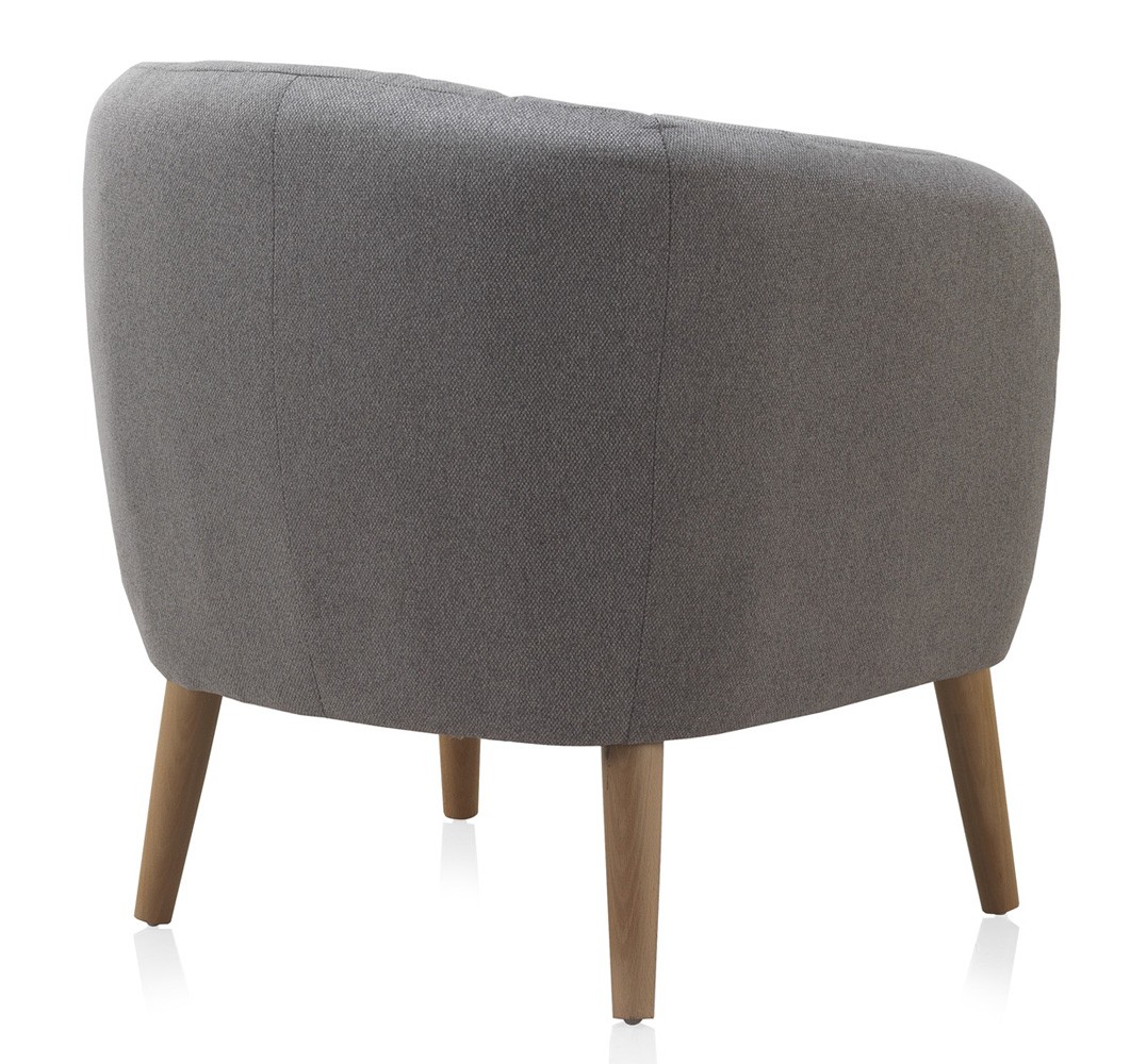 Sillón BRESCIA con patas de madera de haya sosteniendo una estructura en tejido gris oscuro.