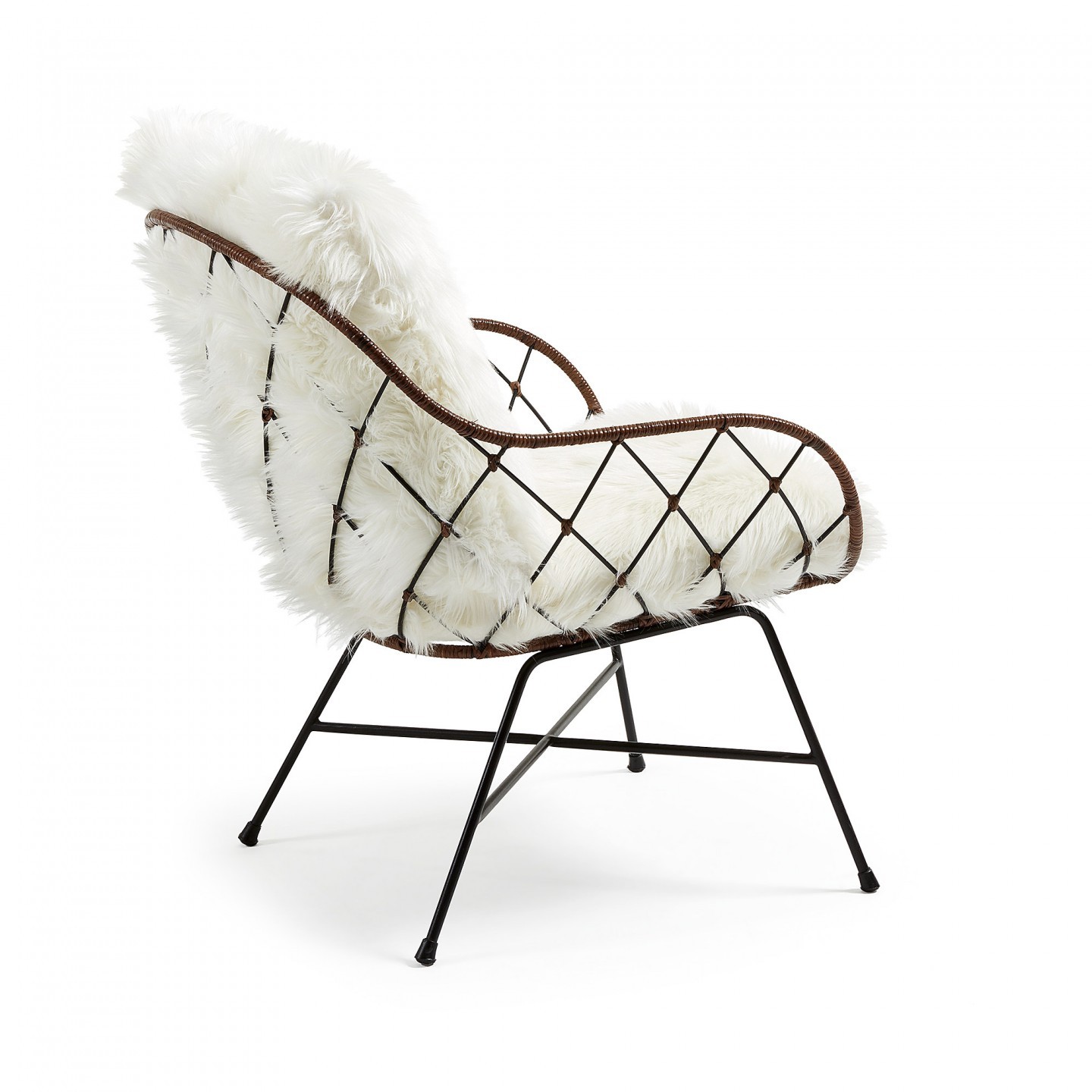 Sillón metálico BRIDGETOWN con decoración en ratán y cojines en piel. Medidas:  Medida alto: 77 cm. Medida ancho: 63 cm. Medida profundo: 68 cm.
