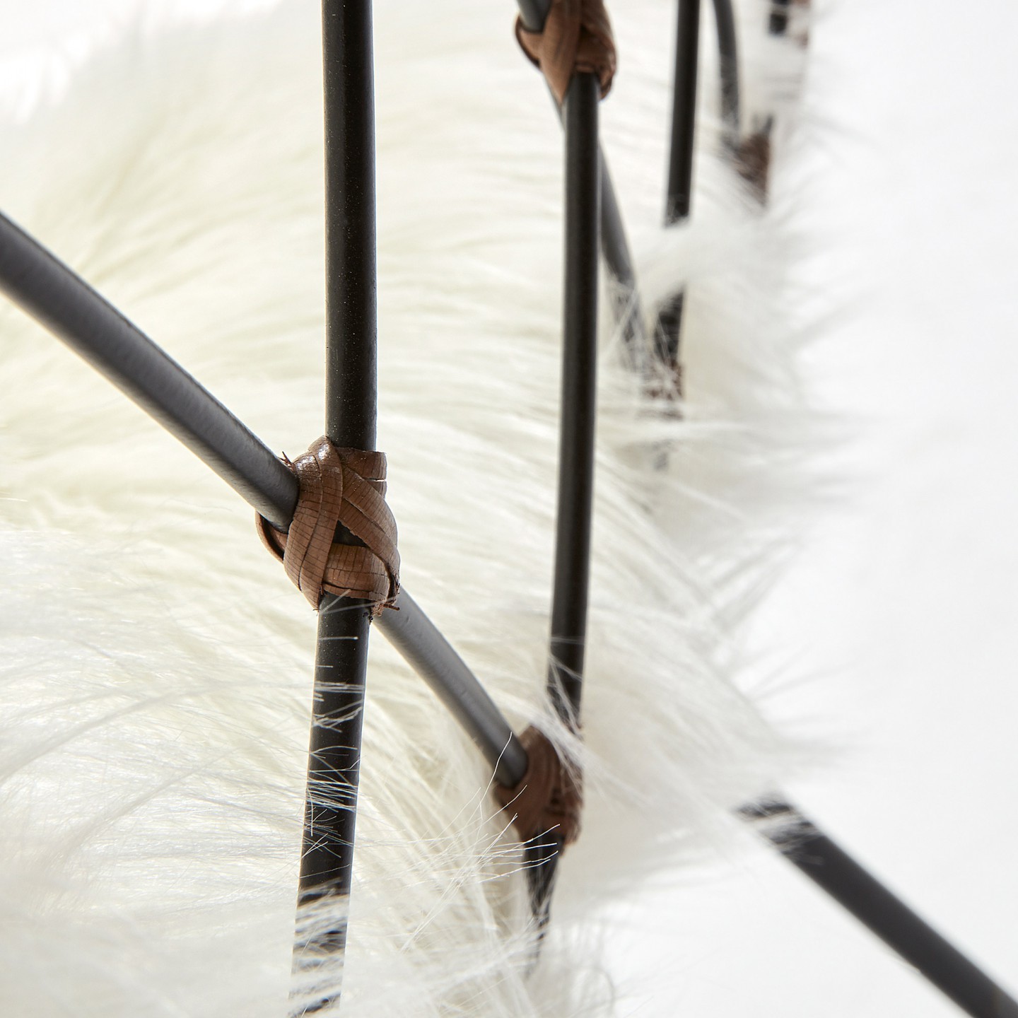 Se trata de un modelo metálico que, gracias al ratán, le da un acabado estéticamente más bonito. Los pies también son de metal, y, con el objetivo de ofrecer una mayor firmeza y estabilidad, están fijadas mediante dos varillas que se cruzan en diagonal. Concluye con cojines de imitación a piel en color blanco, suaves y que harán relajarte sentado en dicha silla.