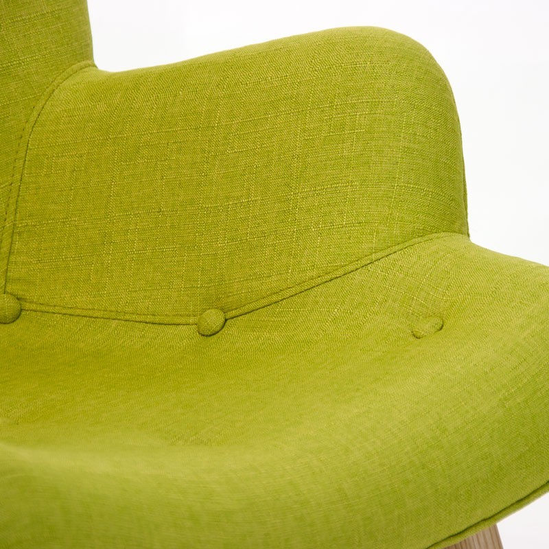 Y es que puede convertirse en un complemento adicional a tu sofá, en el que todo el mundo se quiera sentar. Encontramos una estructura interna rellena de espuma firme, que da lugar al asiento y al respaldo, ambos tapizados en tejido, en esta ocasión acabado en color verde. Se sostiene sobre cuatro robustas patas realizadas en madera de haya natural.