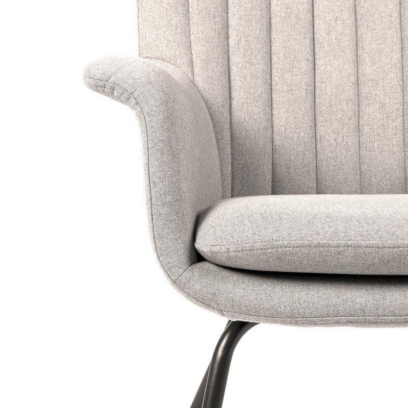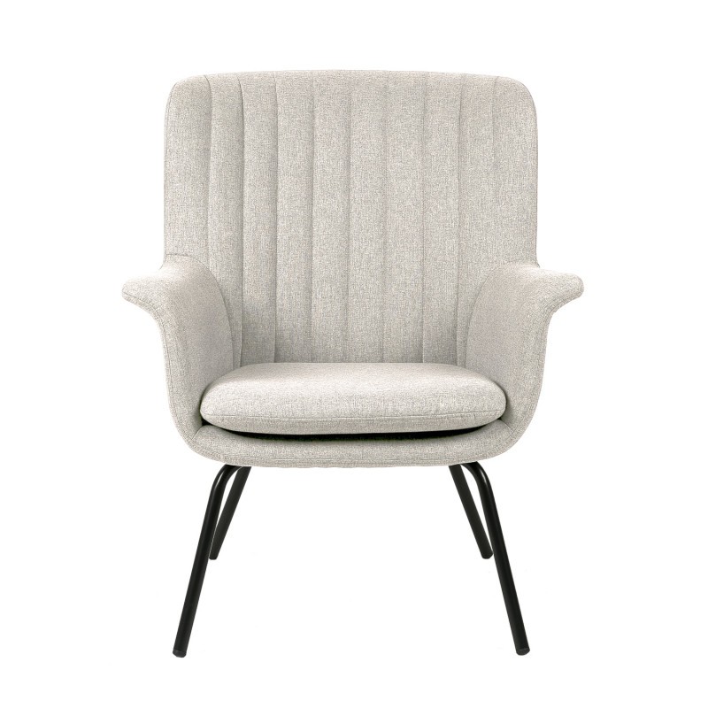 Sillón JALISCO de estructura en tejido gris claro y patas de metal en color negro.