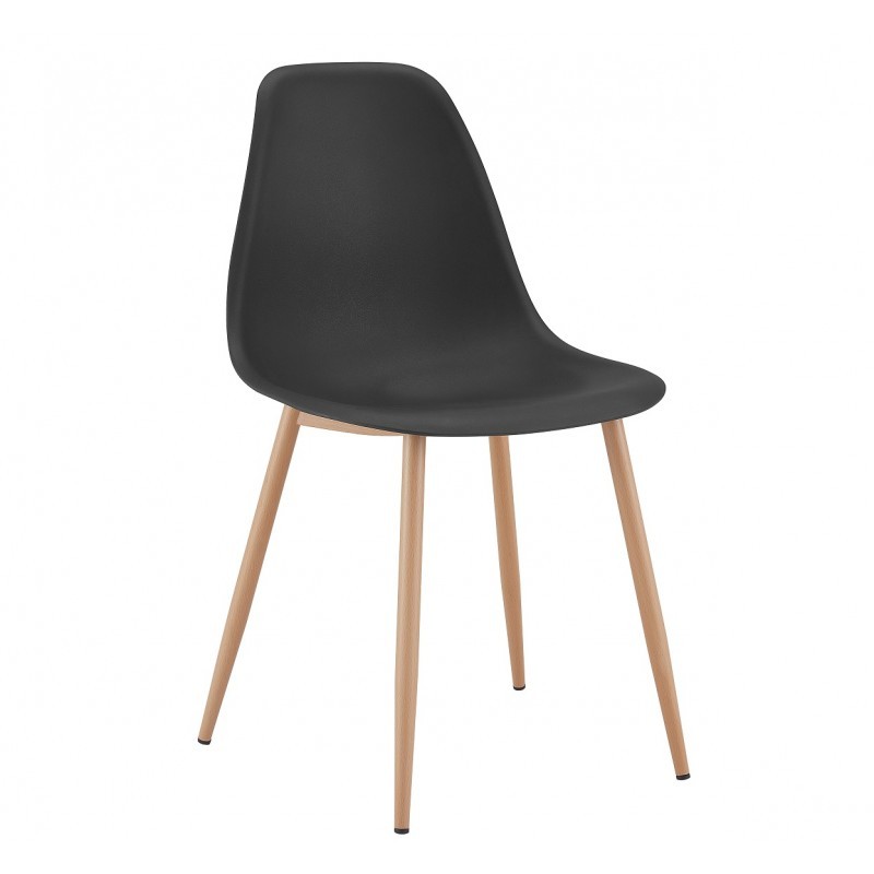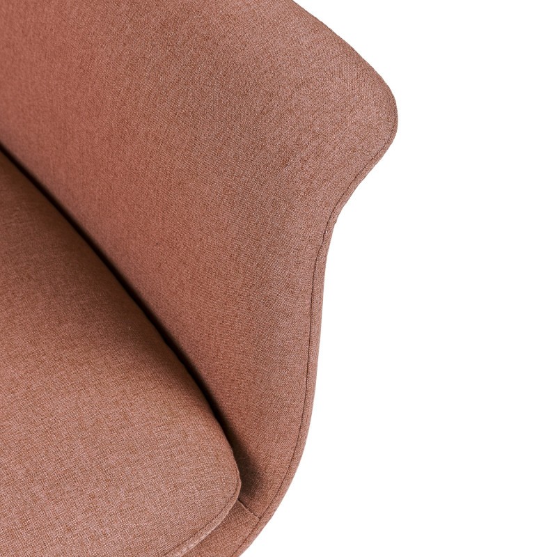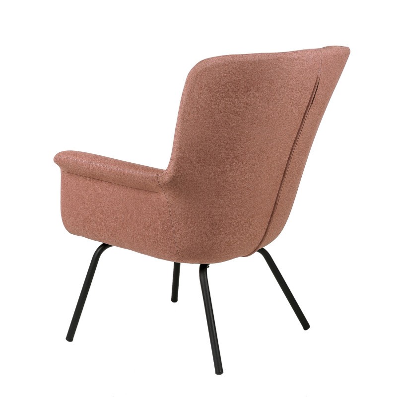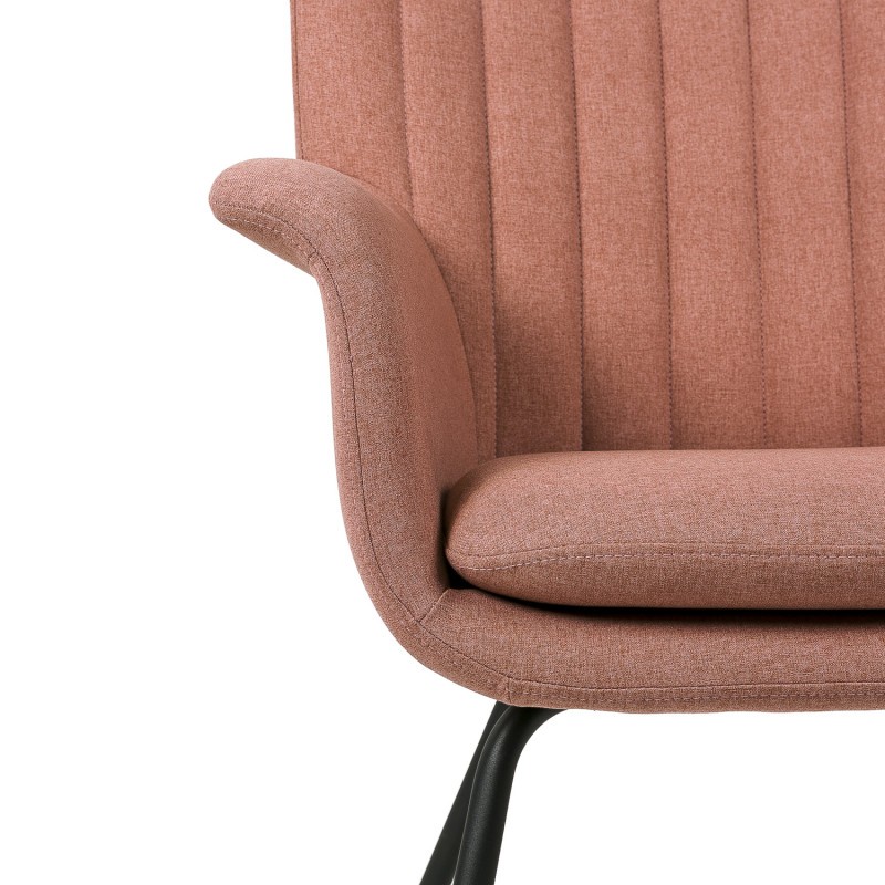 Se presenta con una estructura tapizada en tejido acabado en color rosa claro, y con un diseño que hace que el cuerpo quede adaptado, siendo mayor la sensación de confort. También dispone de reposabrazos. Concluye con cuatro patas metálicas acabadas en color negro.