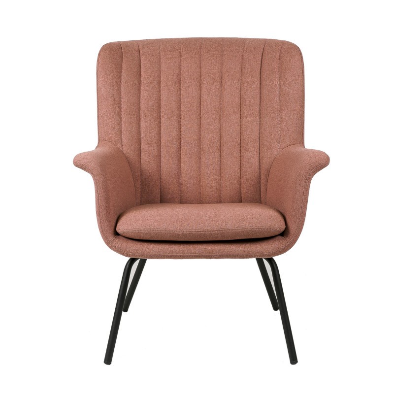 Sillón JALISCO de estructura en tejido rosa claro y patas de metal en color negro.