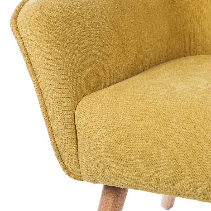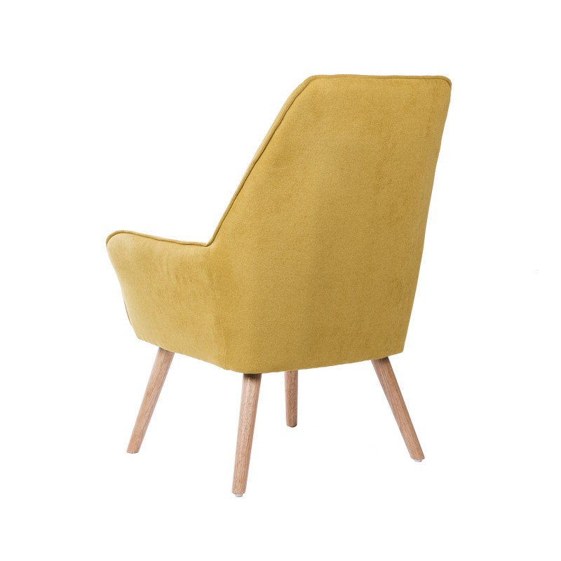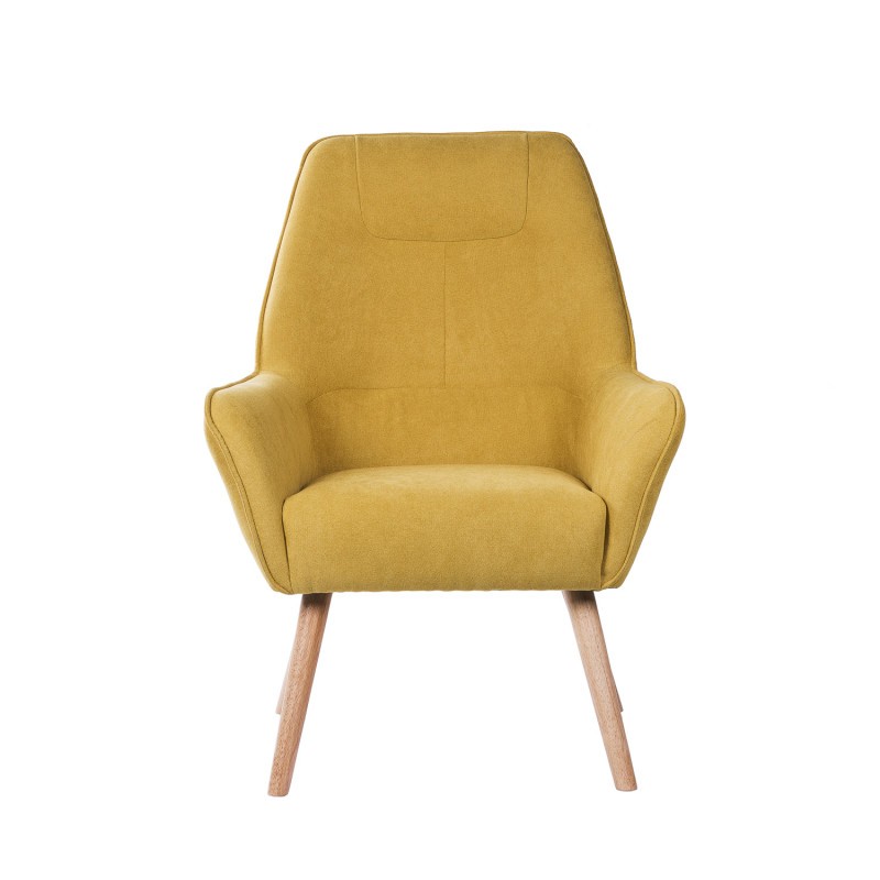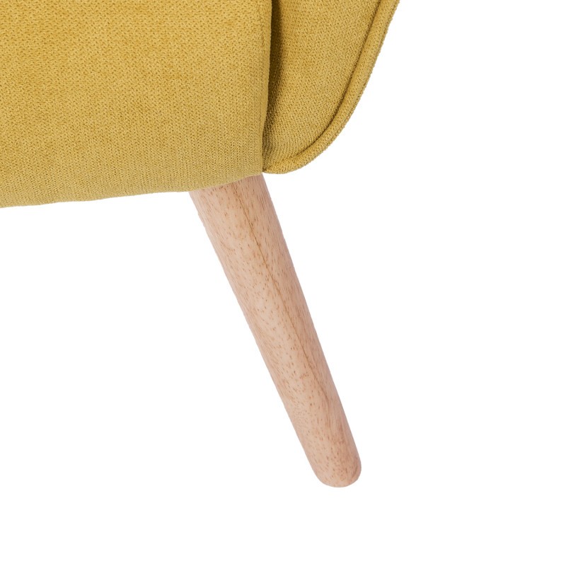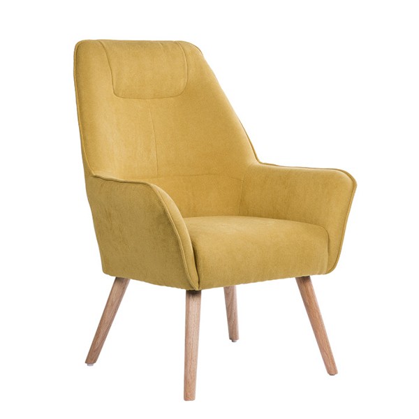 Y puedes comprobar la sensación de relax sentado en el sillón MIAMI, un modelo de gran respaldo y asiento tapizado en tejido de color mostaza, acompañado por cuatro patas ligeramente inclinadas, y realizadas mediante madera natural.