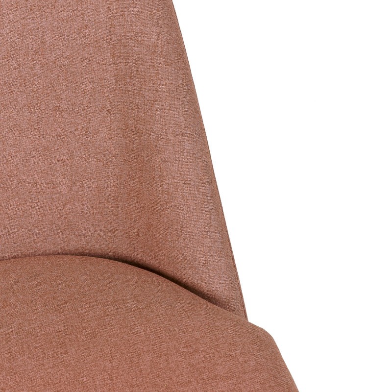 Tanto el asiento como el respaldo están tapizados en tejido acabado en color rosa claro, y lo forma una pieza única. Concluye con cuatro resistentes patas metálicas con finalización en color negro.