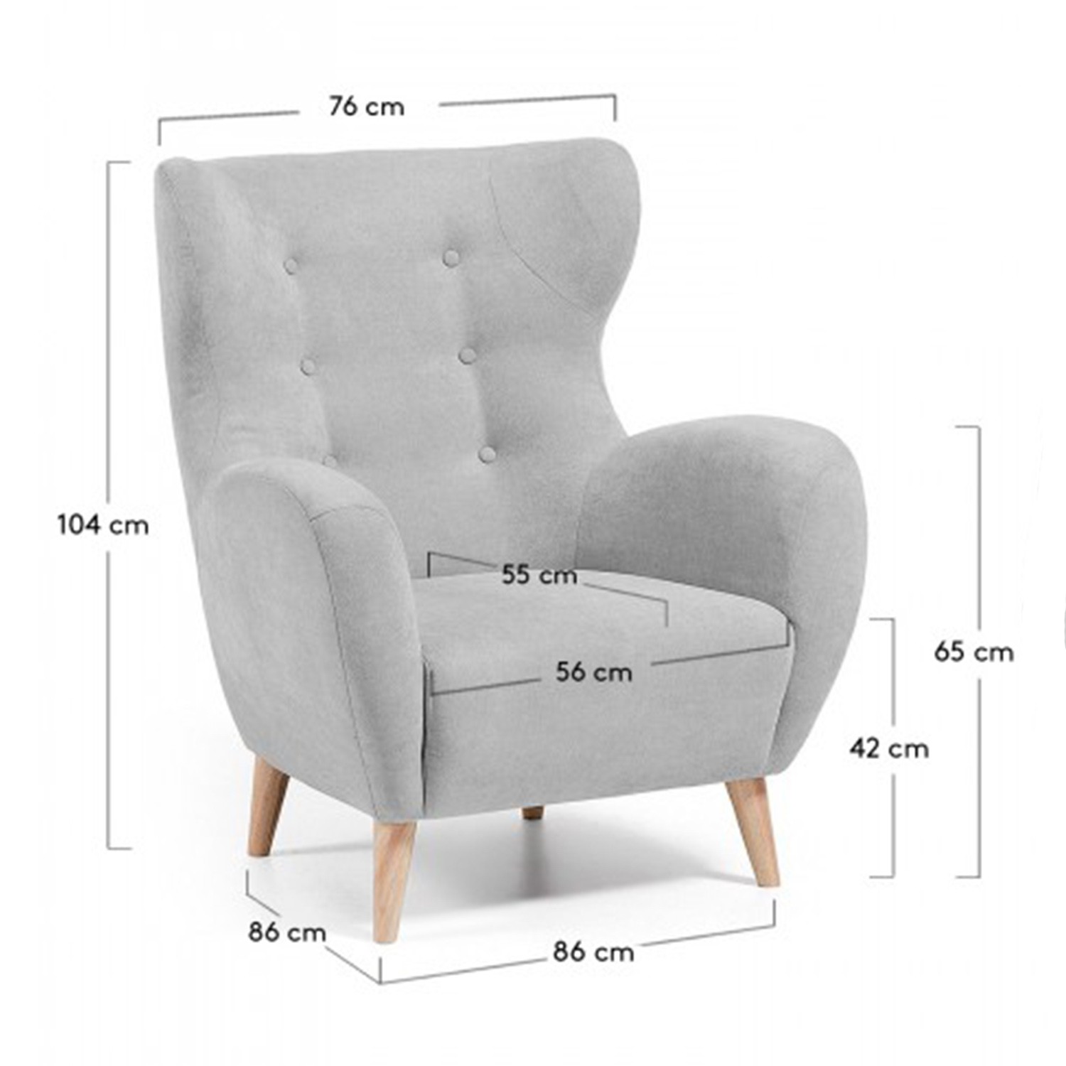 Sillón PASSEN – tela Gris claro – pies madera Natural