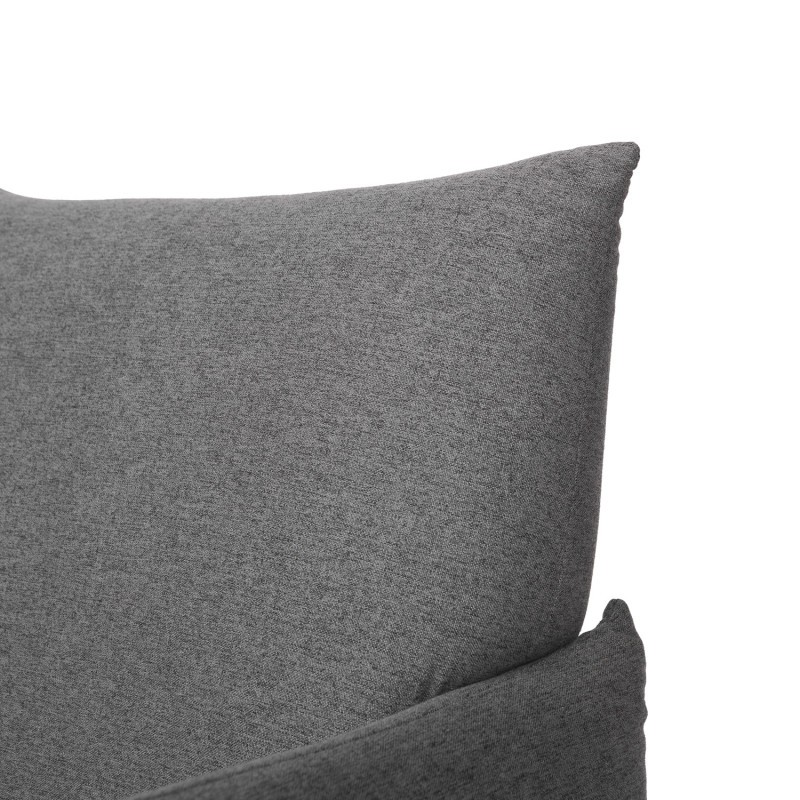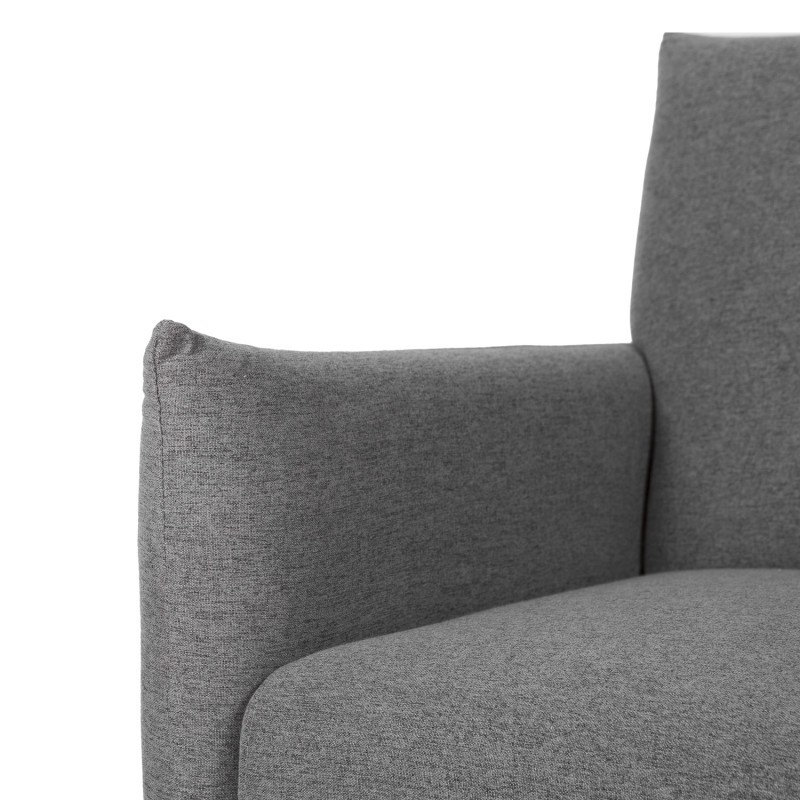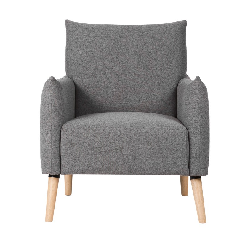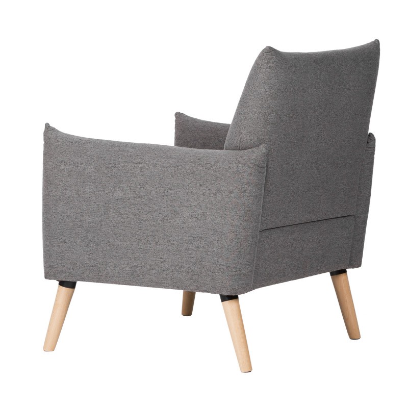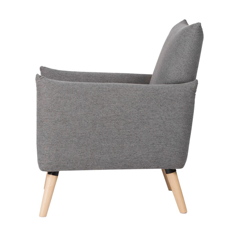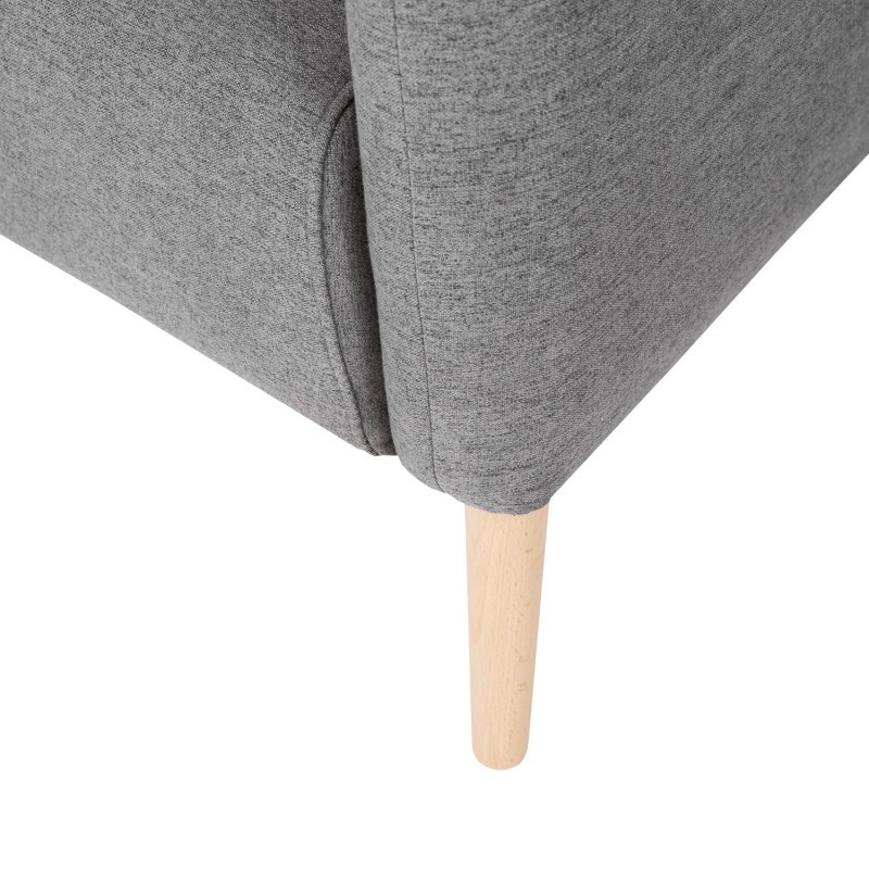 Cuenta con una estructura formada por un asiento y un respaldo tapizados ambos en tejido acabado en color gris oscuro. Soportan la totalidad del peso cuatro patas, ligeramente inclinadas, y realizadas en madera natural.