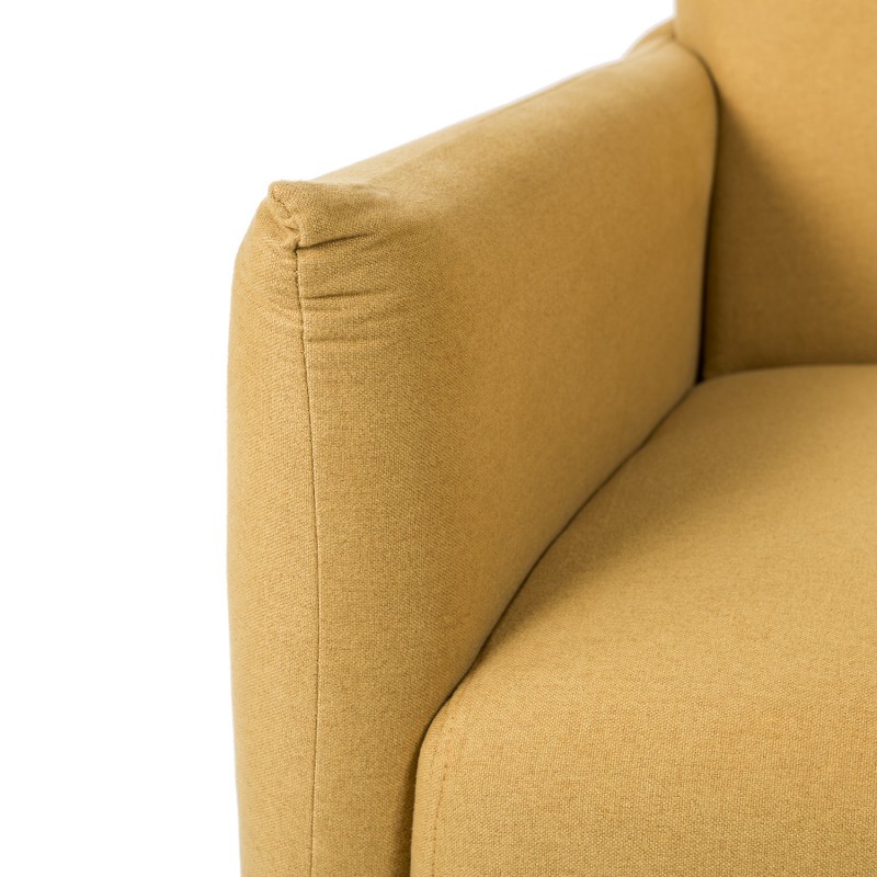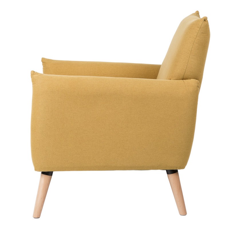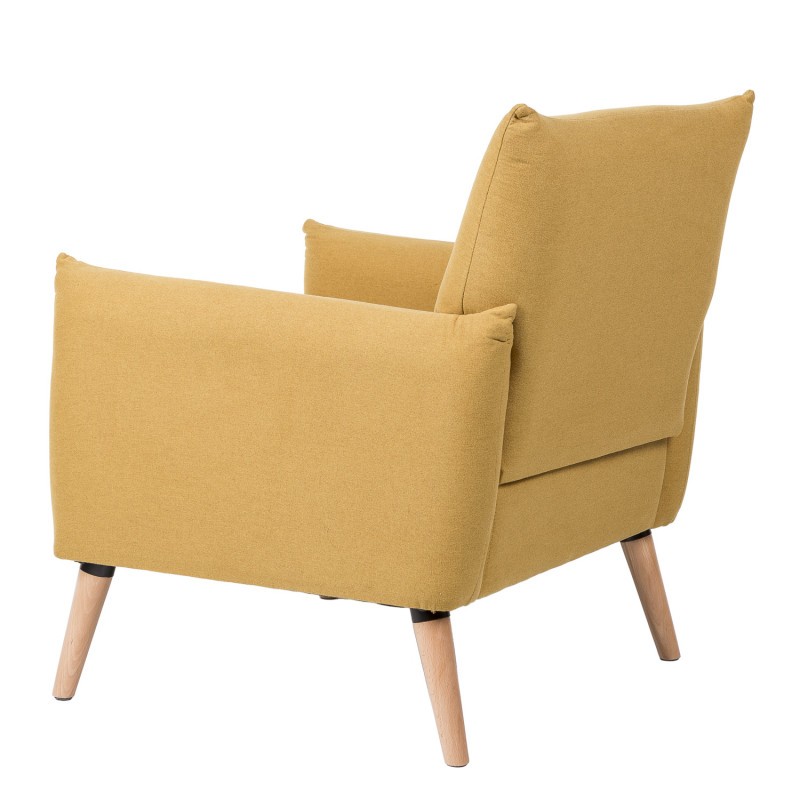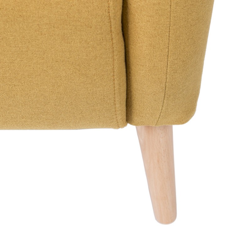 Se trata de un modelo moderno, con un aire nórdico, y que consta de una estructura formada por un asiento y un respaldo tapizados en tejido acabado en un llamativo color mostaza. También encontramos cuatro patas, realizadas en madera natural y ligeramente abiertas con el objetivo de que el peso se distribuya de forma regular, consiguiendo mayor estabilidad.