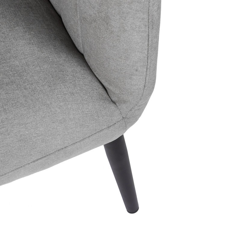 Sillón SALEM de tejido acabado en gris claro y patas metálicas negras.