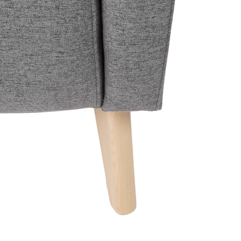De grandes dimensiones y de estilo moderno, consta de una estructura totalmente tapizada en tejido acabado en color gris oscuro, a excepción de las patas, de madera natural y posicionadas de forma inclinada para repartir el peso de una forma mucho más equilibrada.