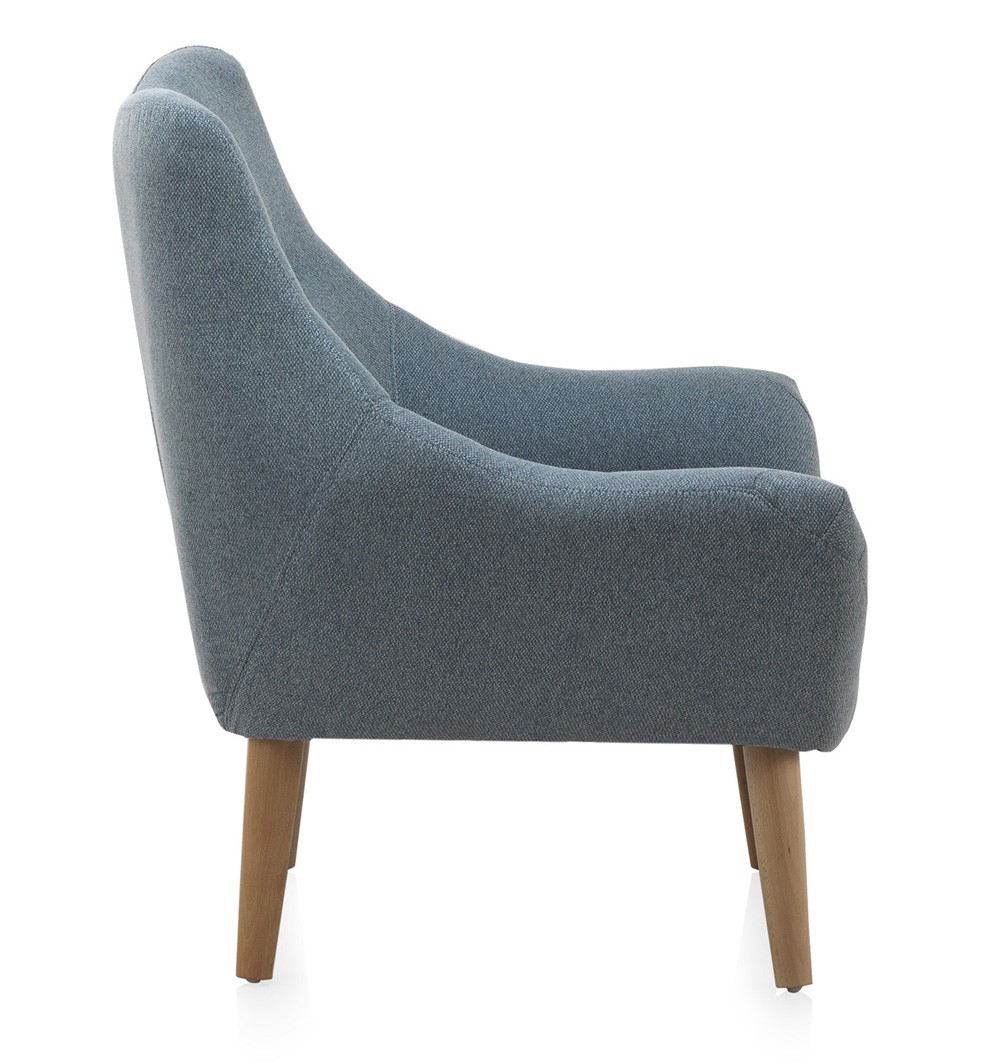Sillón SPEZIA con patas de madera de haya natural y estructura tapizada en tejido verde. Medidas:  Medida alto: 86 cm. Medida ancho: 76 cm. Medida profundo: 65 cm.