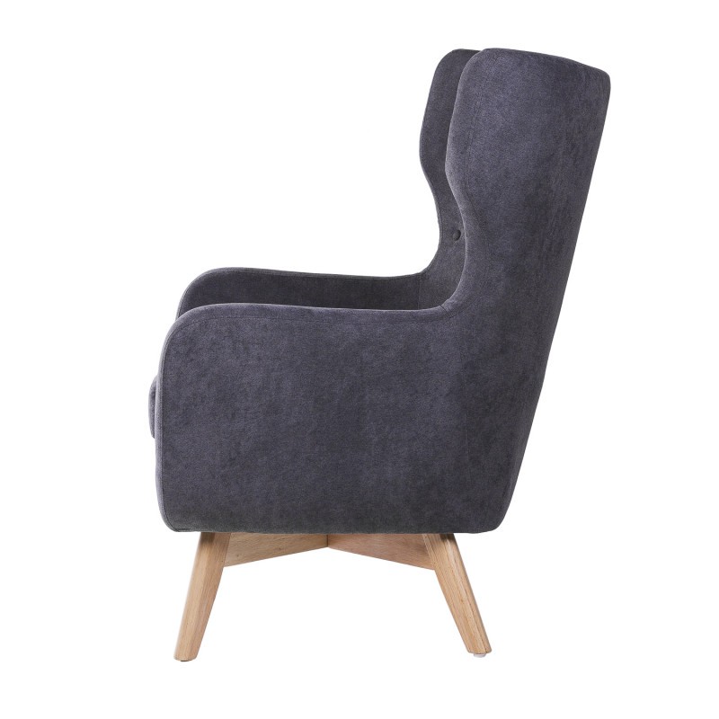Sillón VEGAS – tejido Gris oscuro – madera Natural