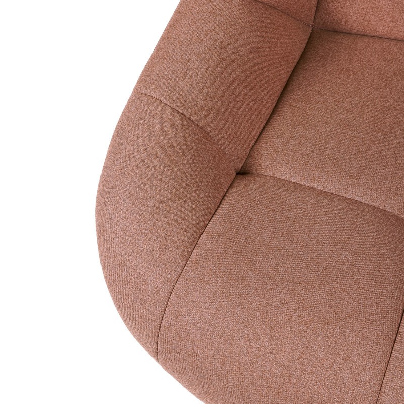 El diseño del sillón YUCATAN es simplemente precioso, y queda bien en salones y comedores sea cual sea el estilo decorativo que se emplee. Consta de una estructura de asiento y respaldo realizados en pieza única y tapizados en tejido de color rosa claro, surgiendo un pie central giratorio con cuatro patas en forma de araña, y que se han realizado en metal acabado en negro. Destacamos especialmente la forma, que recoge todo el cuerpo y ofrece una gran sensación de relax, así como los pespuntes decorativos formando cuadros y proporcionando un acabado final mucho más bonito. El sillón YUCATAN es la pieza ideal para que puedas relajarte haciendo esas actividades que te divierten y hacen tu día más ameno. Puedes disponer del sillón YUCATAN en acabados más discretos, como pueden ser dos tonalidades variadas del color gris, una más clara y otra más oscura.