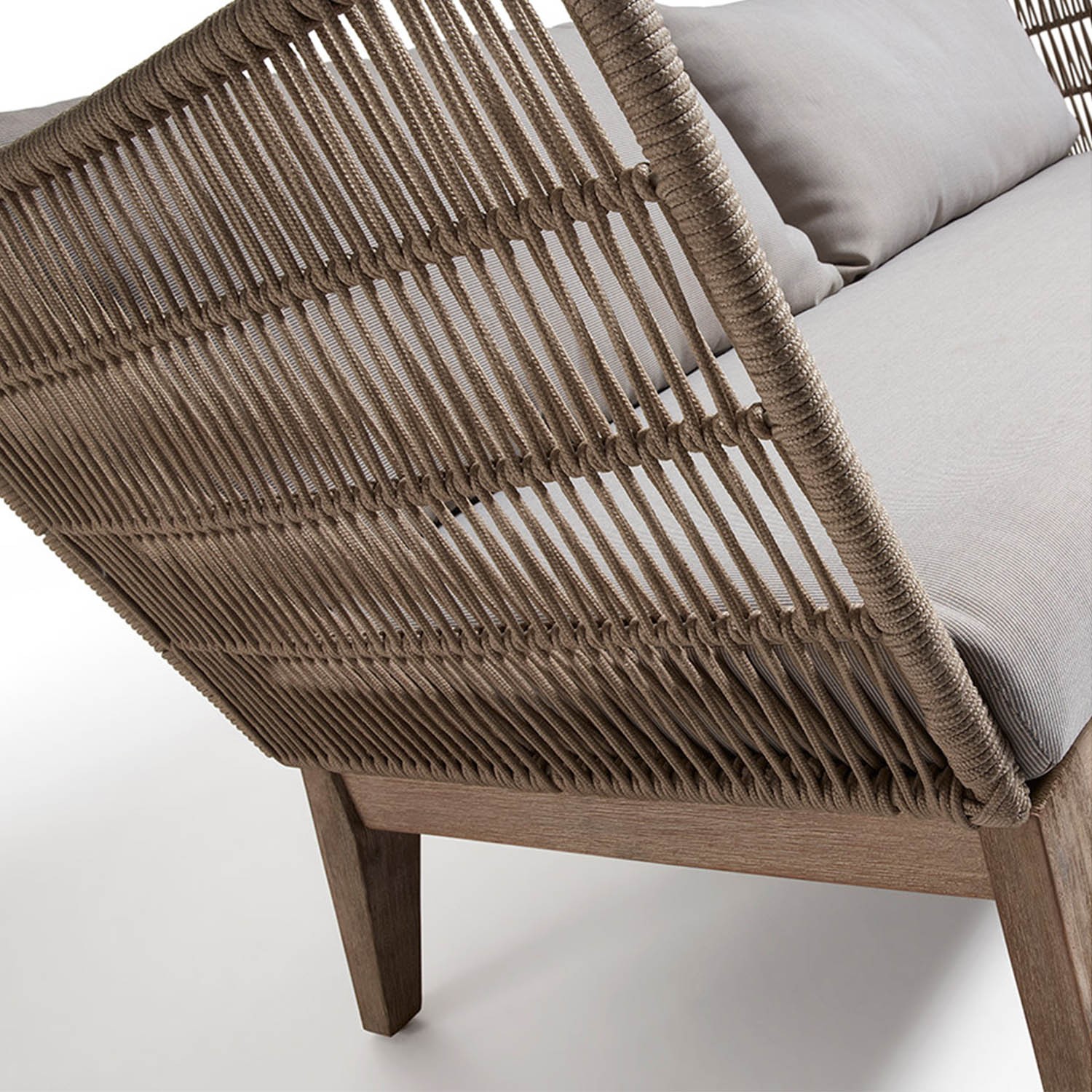 El respaldo está diseñado con cuerdas de poliéster también resistentes al exterior.