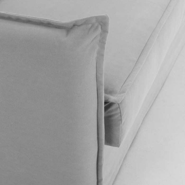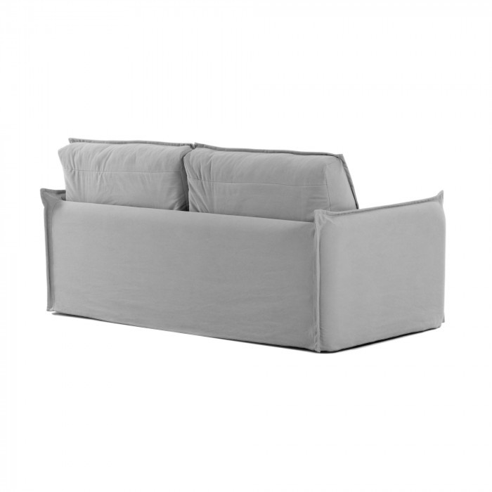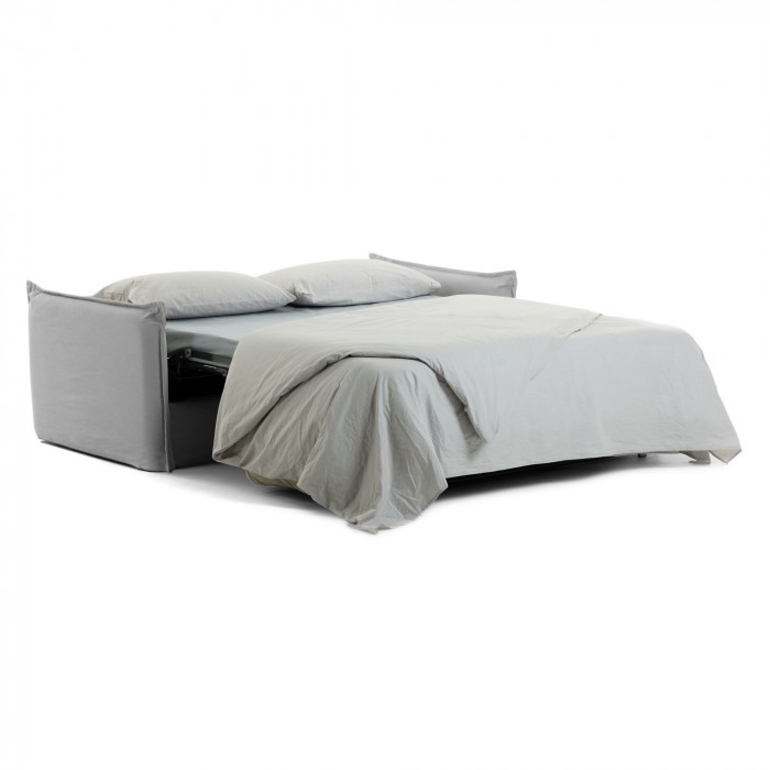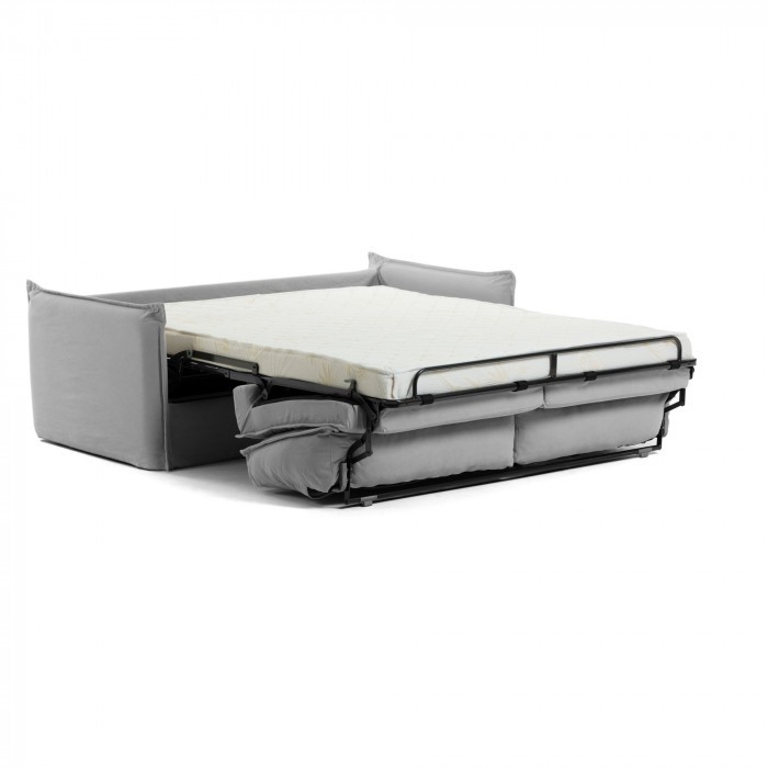 Sofá cama DREAMS tapizado en tejido de color gris.