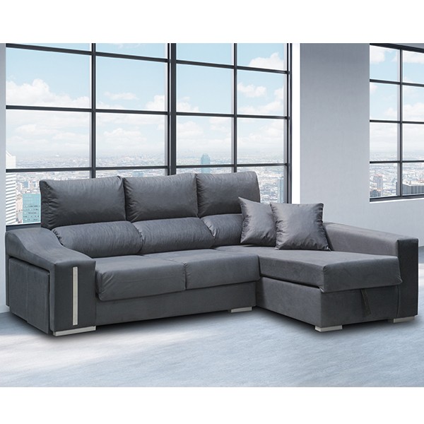 Y es que no es fácil encontrar un sofá con las características que te ofrece nuestro sofá con chaise longue DIVANO, un modelo de tres plazas  tapizado en tejido tipo chenilla en color gris, fabricado en madera de pino y aglomerado, con relleno de gomaespuma, silicona y goma picada parfa una gran comodidad. El chaise longue está situado en la parte derecha. Dispone de reposabrazos, asientos extras de 2 puff escondidos en uo de ellos, y lo mejor de todo es reclinable su respaldo y sus asientos deslizantes por lo que la comodidad es su mayor potencial.