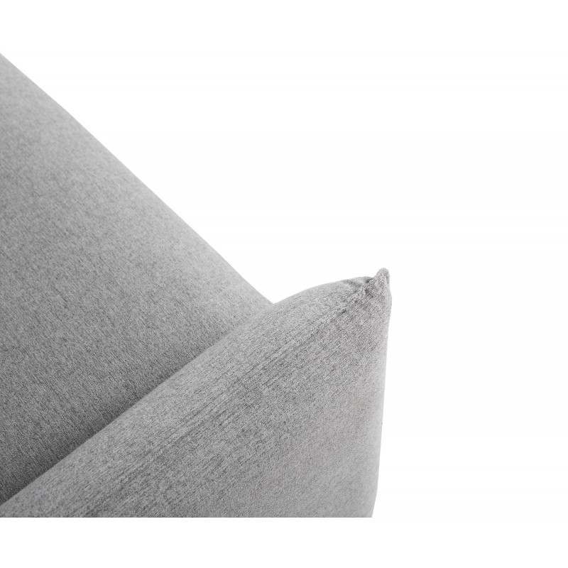 Sofá TUVALU tapizado en tejido gris claro acompañado de patas metálicas en negro.