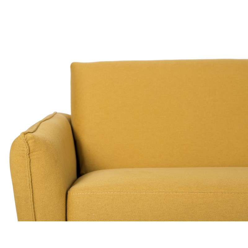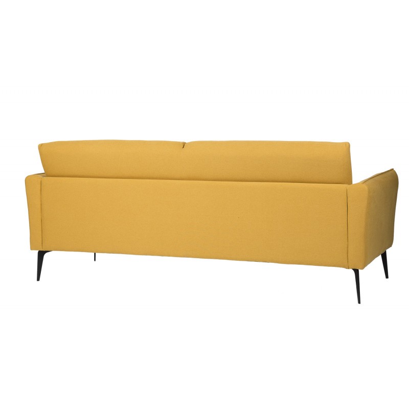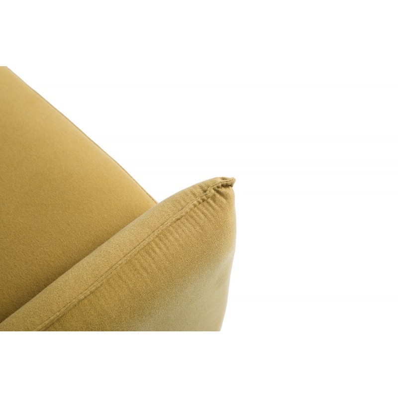 Y es se trata de un modelo de lineas rectas que proporciona una gran comodidad. Cuenta con una estructura rectangular, tapizada en su totalidad en un llamativo color mostaza, y que se sostiene mediante cuatro patas metálicas en negro.