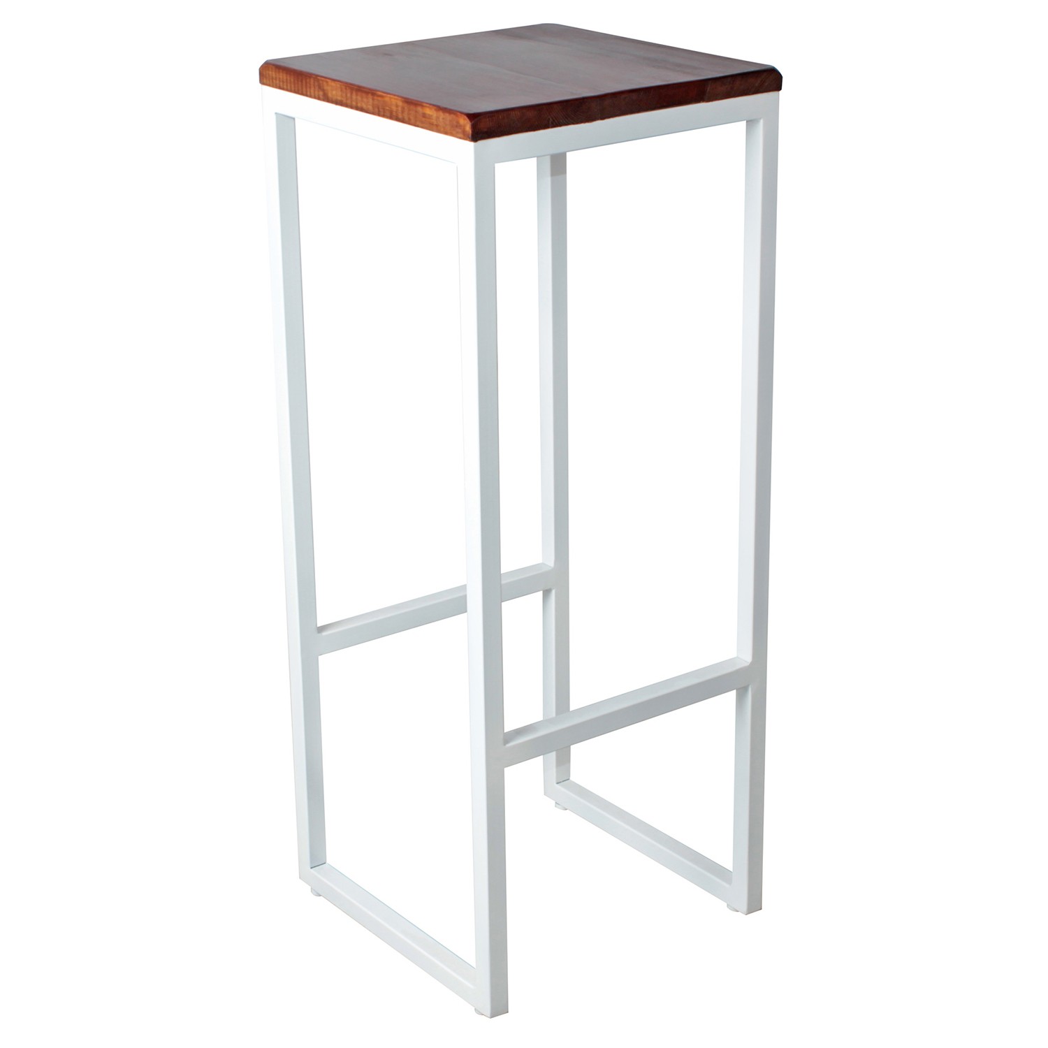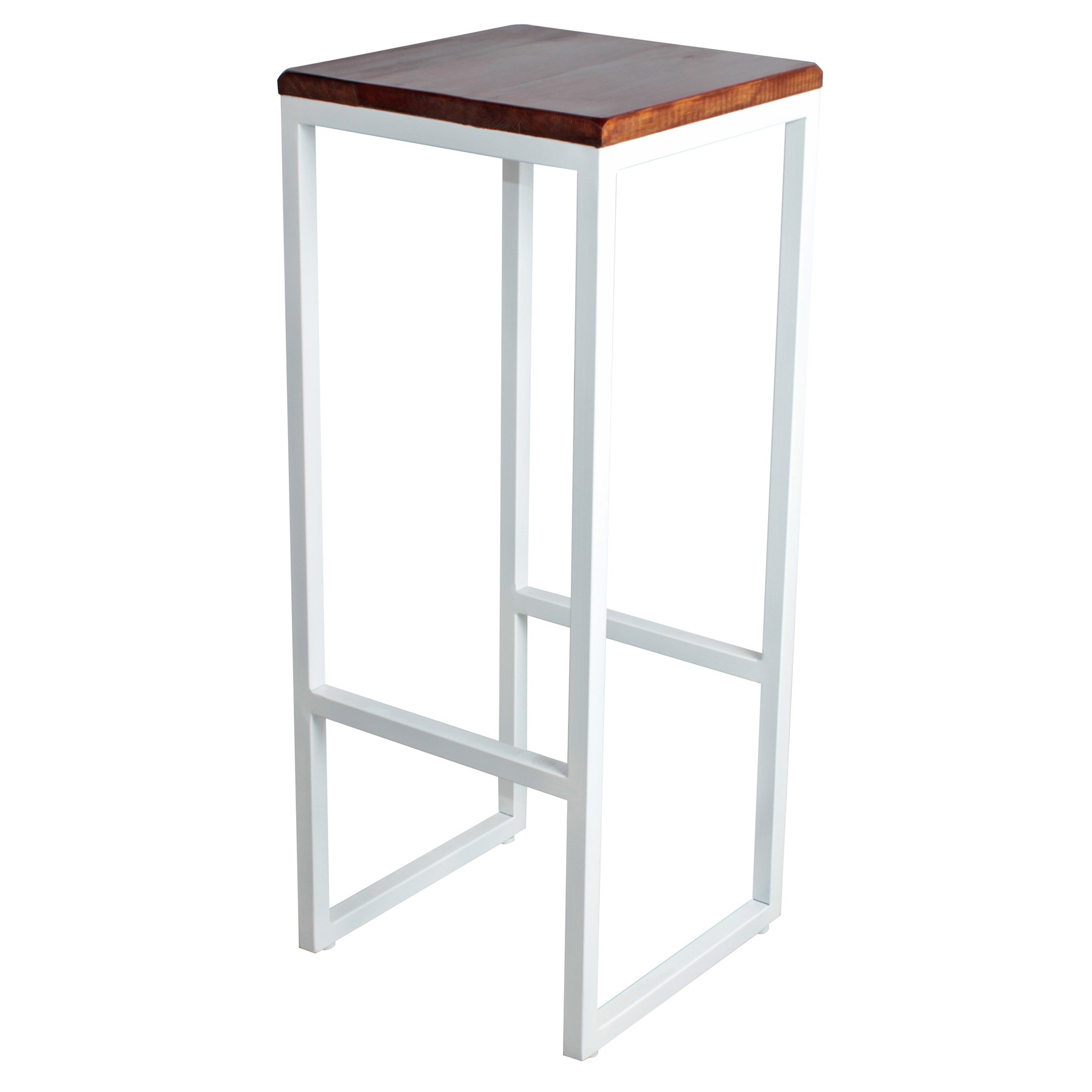 Se trata, en esta ocasión, del taburete alto BIN. Un modelo de calidad, ya que utiliza los mejores productos del mercado. Por un lado, la estructura, está diseñada en metal y se ha elegido el color blanco para su acabado. Además, incluye reposapies para ofrecer un plus de comodidad a los usuarios. Por otro lado, hablamos del asiento, que, en esta ocasión es cuadrado y que ha estado diseñado en madera con acabado envejecido.