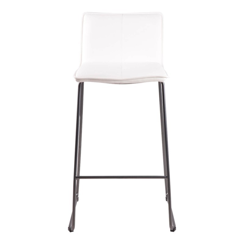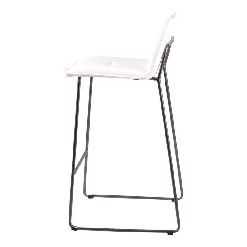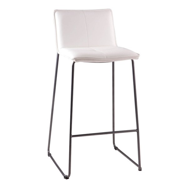 Por lo tanto, no dejes de conocer el taburete alto CARSOL, un modelo de lineas modernas, formado por un asiento y un respaldo tapizados en polipiel de color blanco y a la que le acompaña una resistente estructura de dos patas en forma de patín, en acero reforzado e incluyendo también reposapies.
