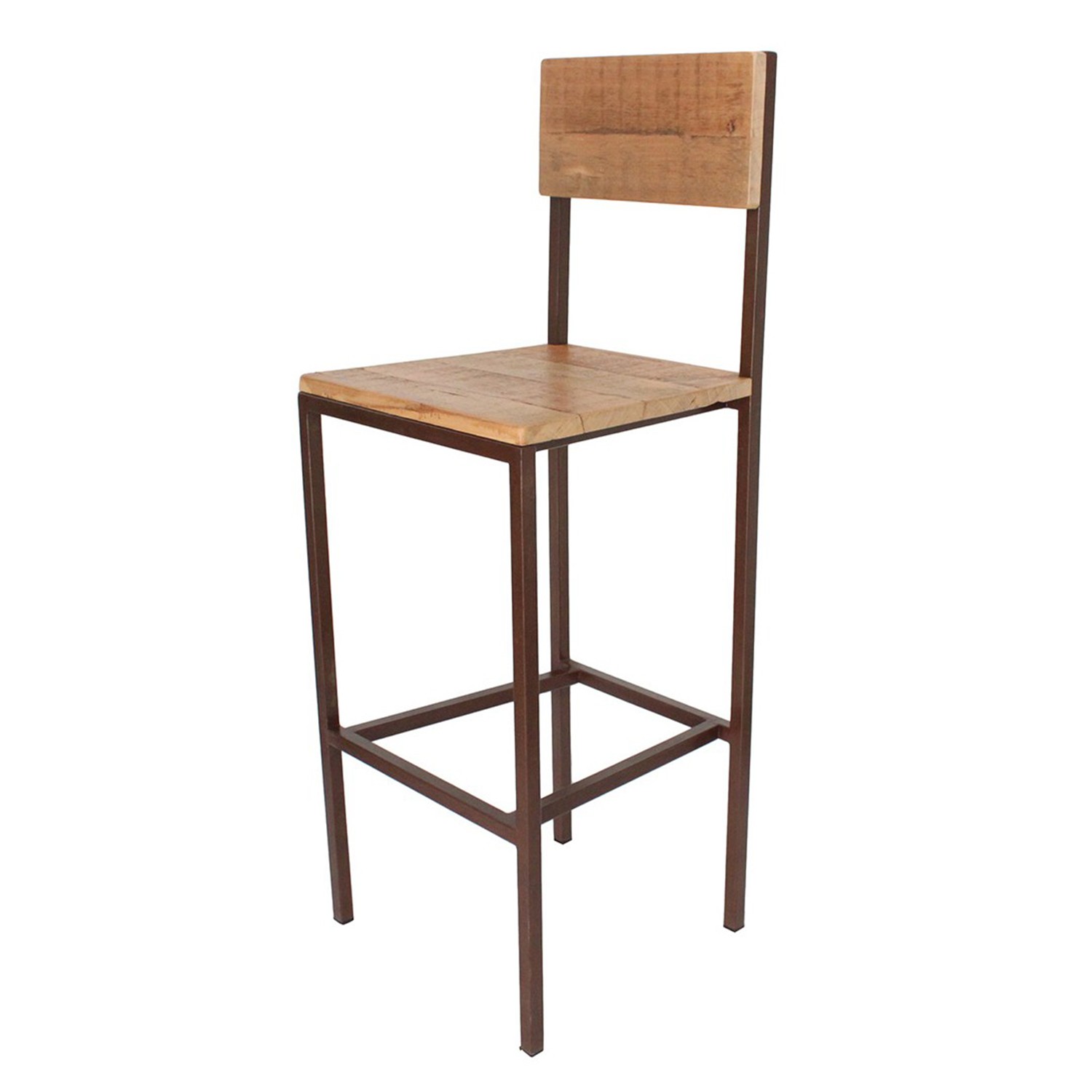 Para su estructura se ha necesitado de hierro que se le ha dado un acabado en óxido. También se le ha añadido un reposapies para que tus piernas descansen más a gusto en el taburete alto DOMI.