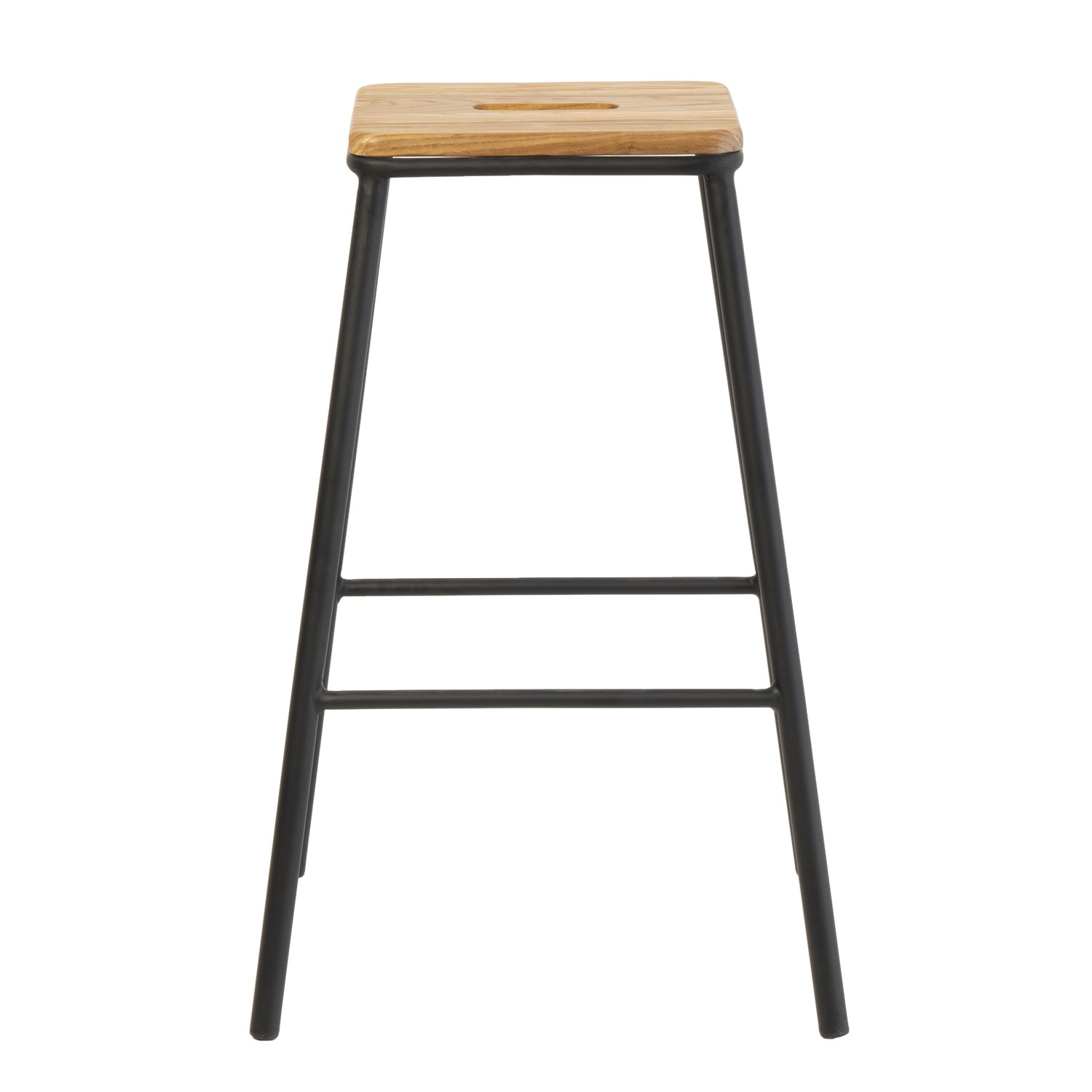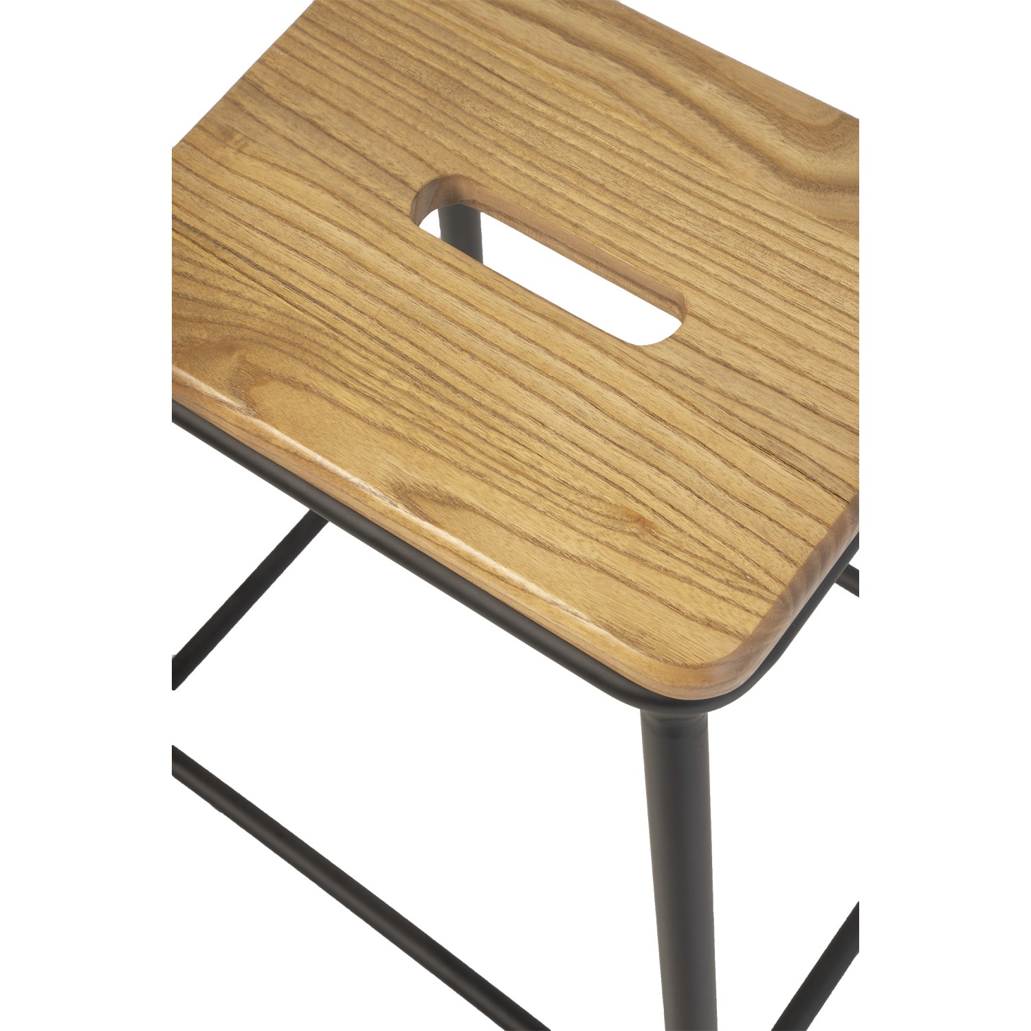 Hablamos de un modelo formado por un asiento de madera natural, que se sostiene mediante una estructura de metal en color negro, y que incorpora un reposapies para mayor comodidad del usuario.