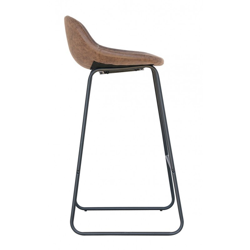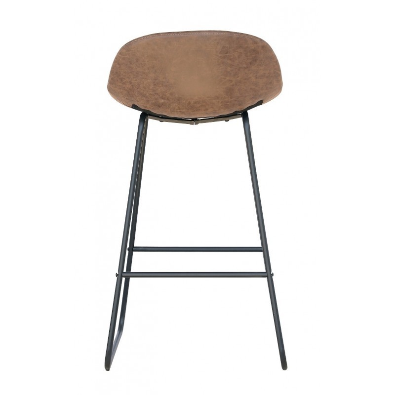 El asiento está ideado para que nos sentemos y nos relajemos, pues su formato es de forma cóncava, mullido y tapizado en similpiel color vintage marrón oscuro. También dispone de un pequeño respaldo para la zona lumbar. Sus costuras llevan un importante detalle con hilos de contraste en otra tonalidad.