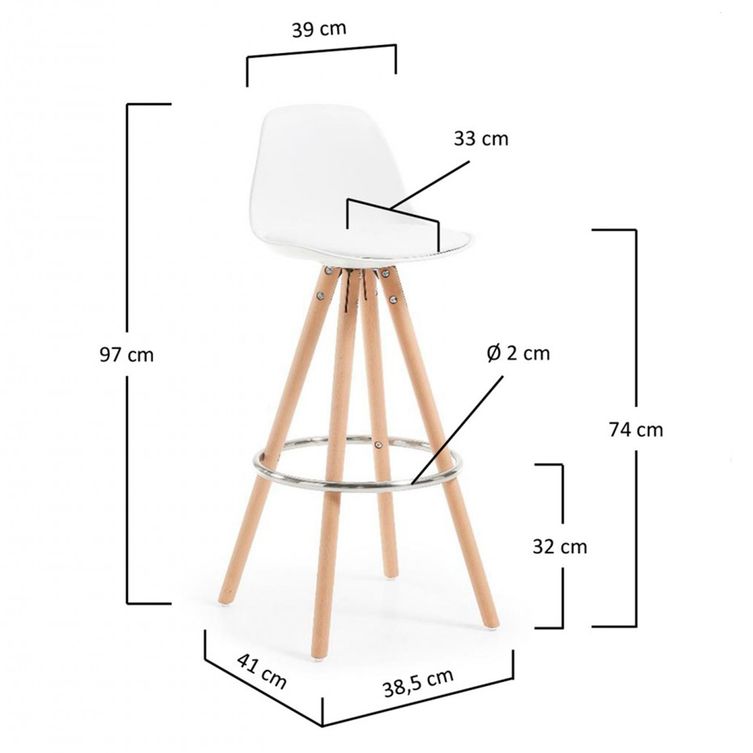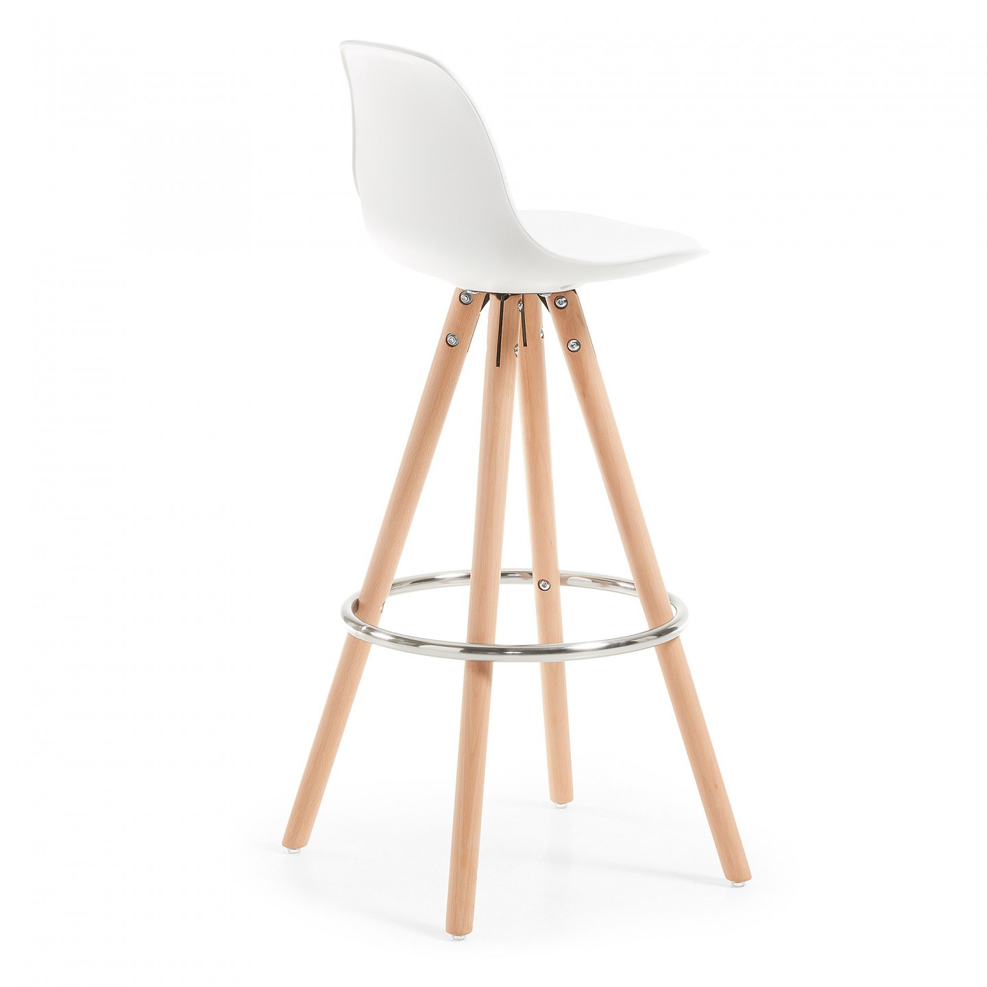 Empezando por los pies, éstos estan fabricados en madera, unidos finalmente entre sí para aposentarse en la parte de abajo del asiento. Además dispone de un reposapies de acero mate para que tus pies se reposen sobre él y tu estés mucho más confortable.