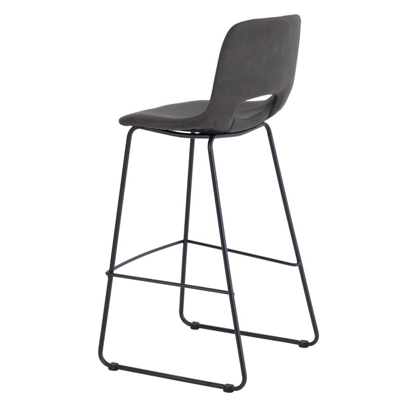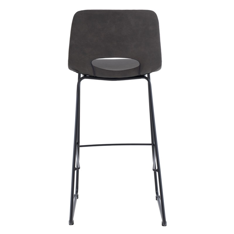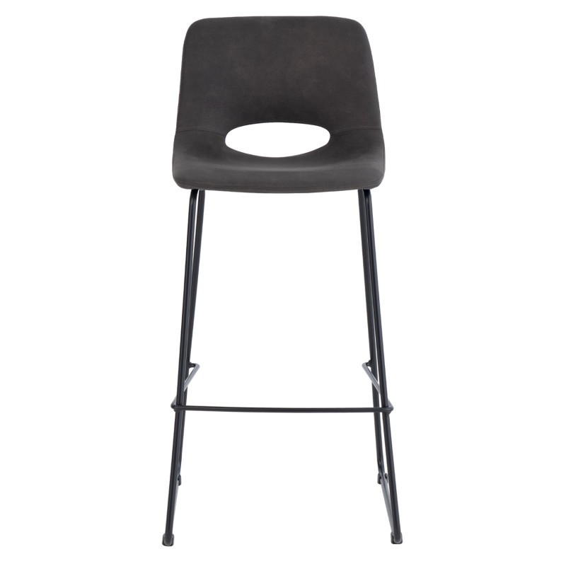 Para empezar diremos que hablamos del taburete alto NOWAR y que se trata de un modelo en el que encontramos un asiento y un respaldo realizados en poliester de color gris oscuro. Su asiento es muy confortable y a su vez de lo más moderno, al igual que sus patas en forma de patín, fabricadas en metal color negro.