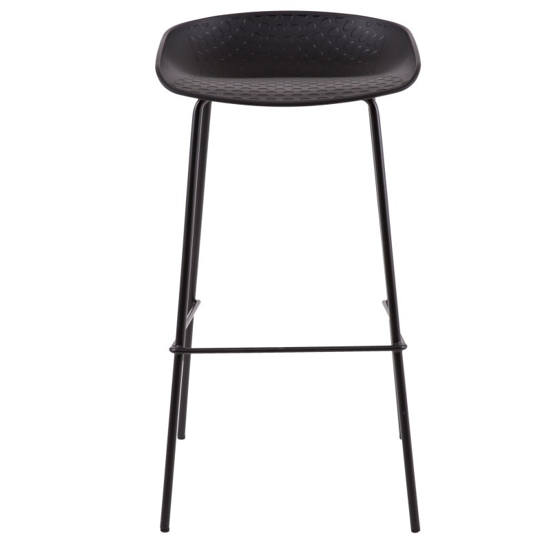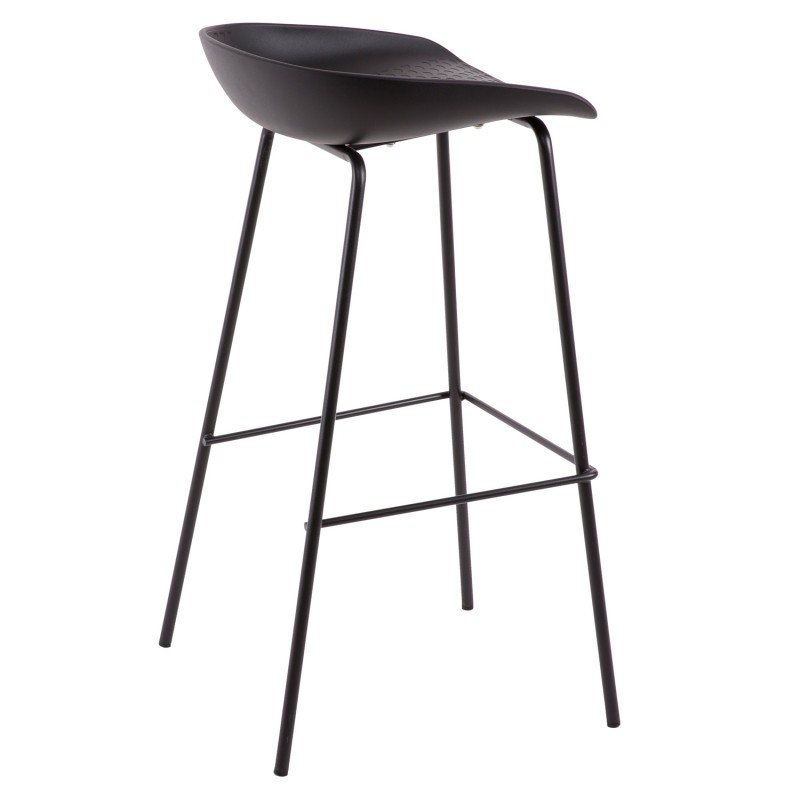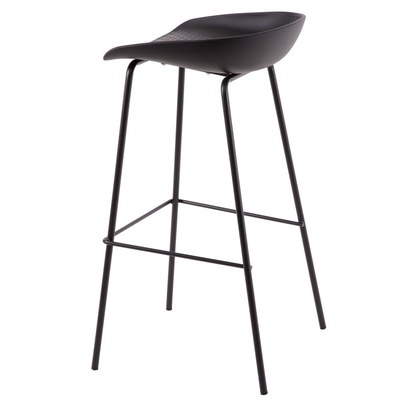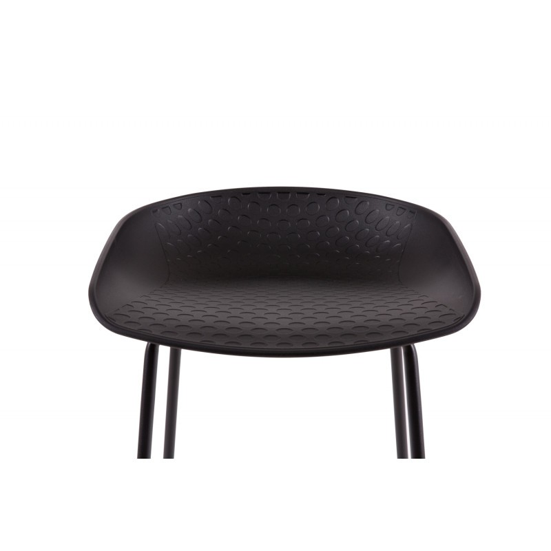 Se trata de un modelo moderno, en el que se encuentran presentes dos materiales. Por un lado, el polipropileno, un tipo de plástico de alta calidad acabado en color negro, misma tonalidad que se emplea para las cuatro patas, realizadas en este caso en metal.