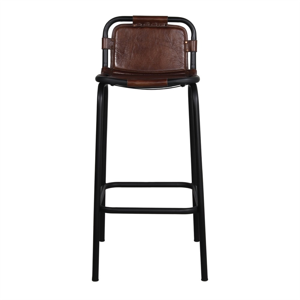 Taburete alto  SUTCAC H81 – cuero Marrón – metal Negro