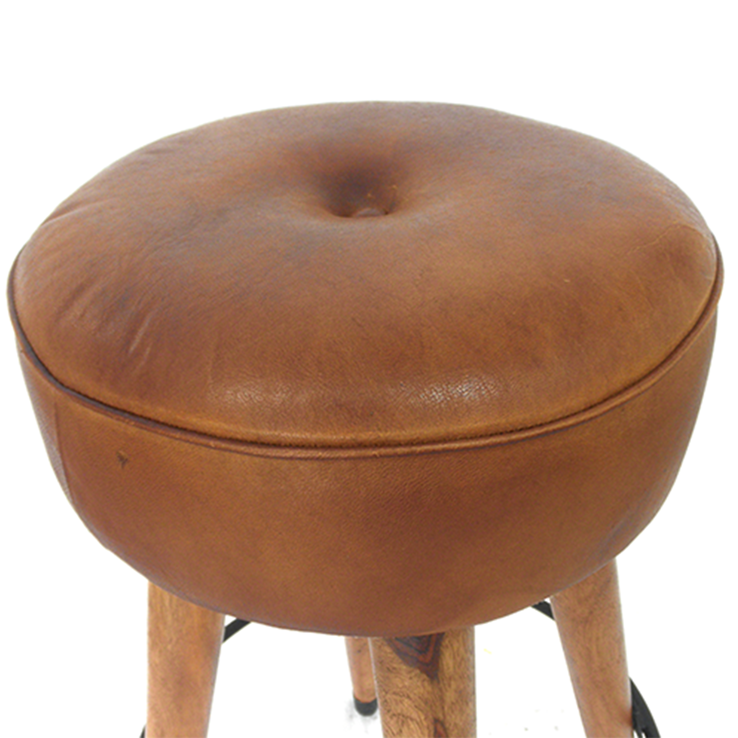 Su asiento circular está fabricado en piel, pero dando un resultado muy acertado y cómodo para quien decida sentarse en él.