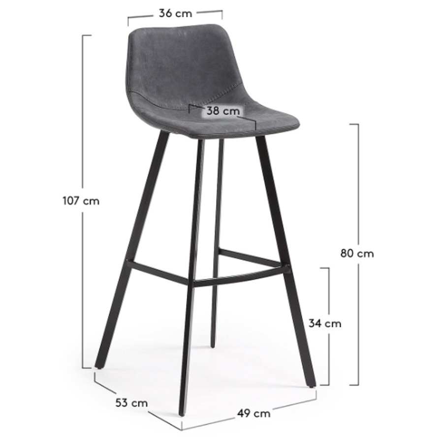 Taburete alto VICBAD con asiento de polipiel en color antracita y pies de acero. Medidas:  Medida alto: 107 cm. Medida ancho: 49 cm. Medida profundo: 55 cm. Medida alto asiento: 80 cm.