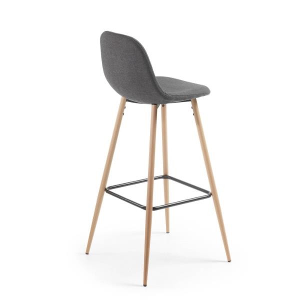 Taburete bajo ARAMAT de tejido gris oscuro y patas de metal con efecto madera de haya. Medidas:  Medida alto: 91 cm. Medida ancho: 47 cm. Medida profundo: 48 cm. Medida alto asiento: 65 cm.