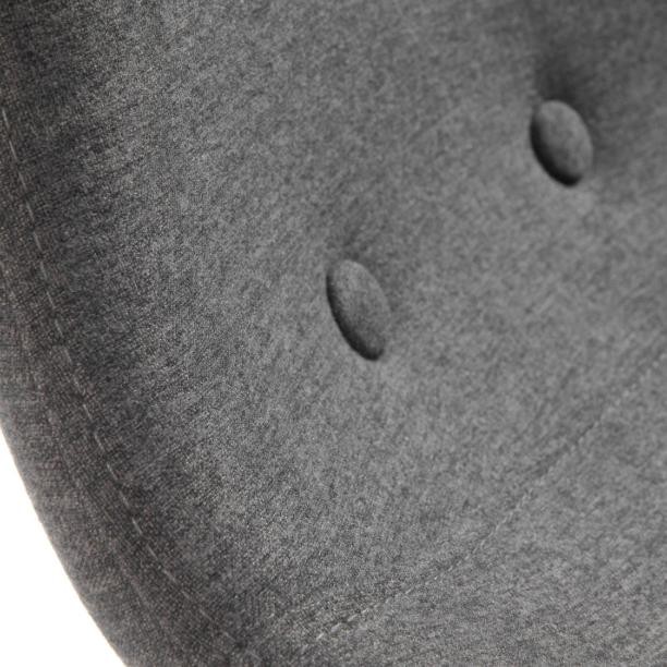En esta ocasión, el taburete bajo ARAMAT cuenta con cuatro patas de metal con efecto de madera de haya natural, y son las encargadas de sostener un asiento y un respaldo de pieza única, tapizado en tejido de color gris oscuro. Dispone de reposapies para una mayor comodidad, así como unos botones en la zona del respaldo que le dan un acabado final mucho más trabajado.