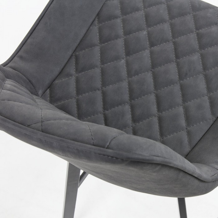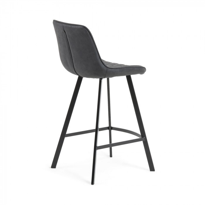 Taburete bajo BEVERLY de metal negro con asiento en polipiel color grafito.