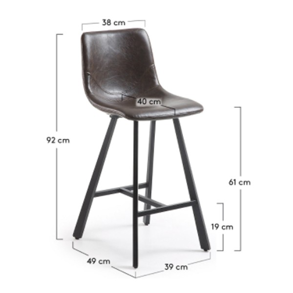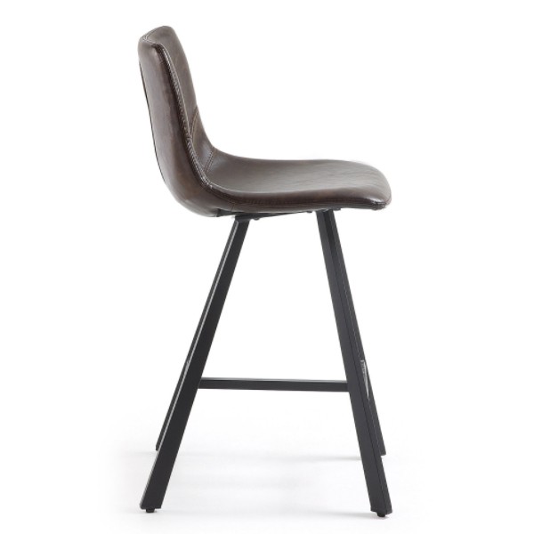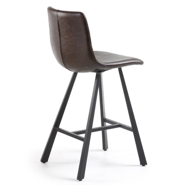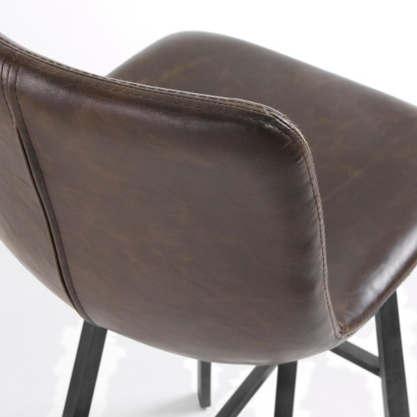 Hoy le toca el turno de presentaciones al taburete bajo DIVINE. De estilo vintage, se trata de un original modelo en el que apreciamos dos materiales diferentes. Por un lado, tanto el asiento como el respaldo, que han estado tapizados en polipiel en un color marrón oscuro. En cambio, las patas e incluso el reposapies son de metal, siendo el negro el color elegido para su acabado final, pintado mediante la técnica de la pulverización.