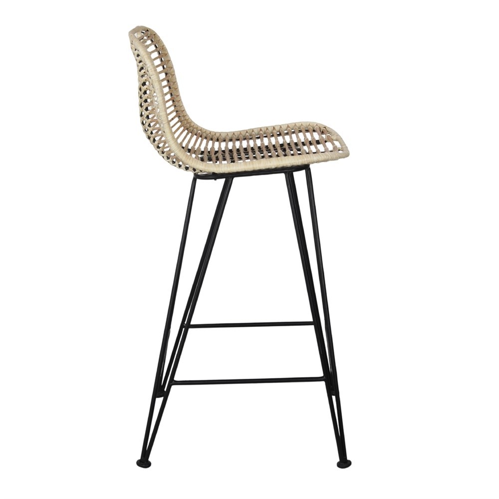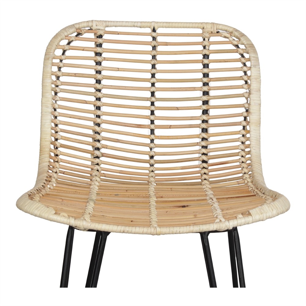 Tiene una estructura de metal lacado en negro, su asiento es de rattan natural, con él le podrás dar un toque étnico a tu hogar.