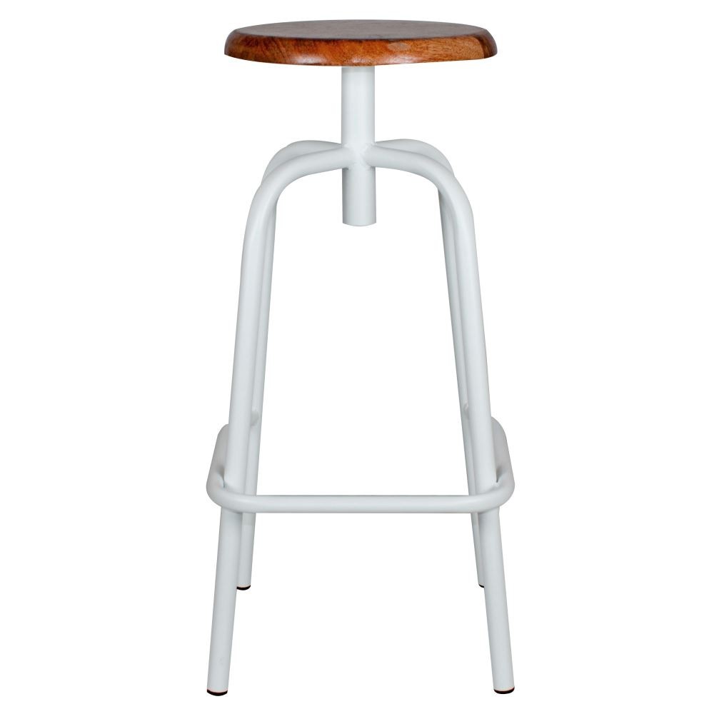 Se trata de un modelo de estilo industrial, con estructura tubular de acero con acabado en color blanco y asiento de madera natural.