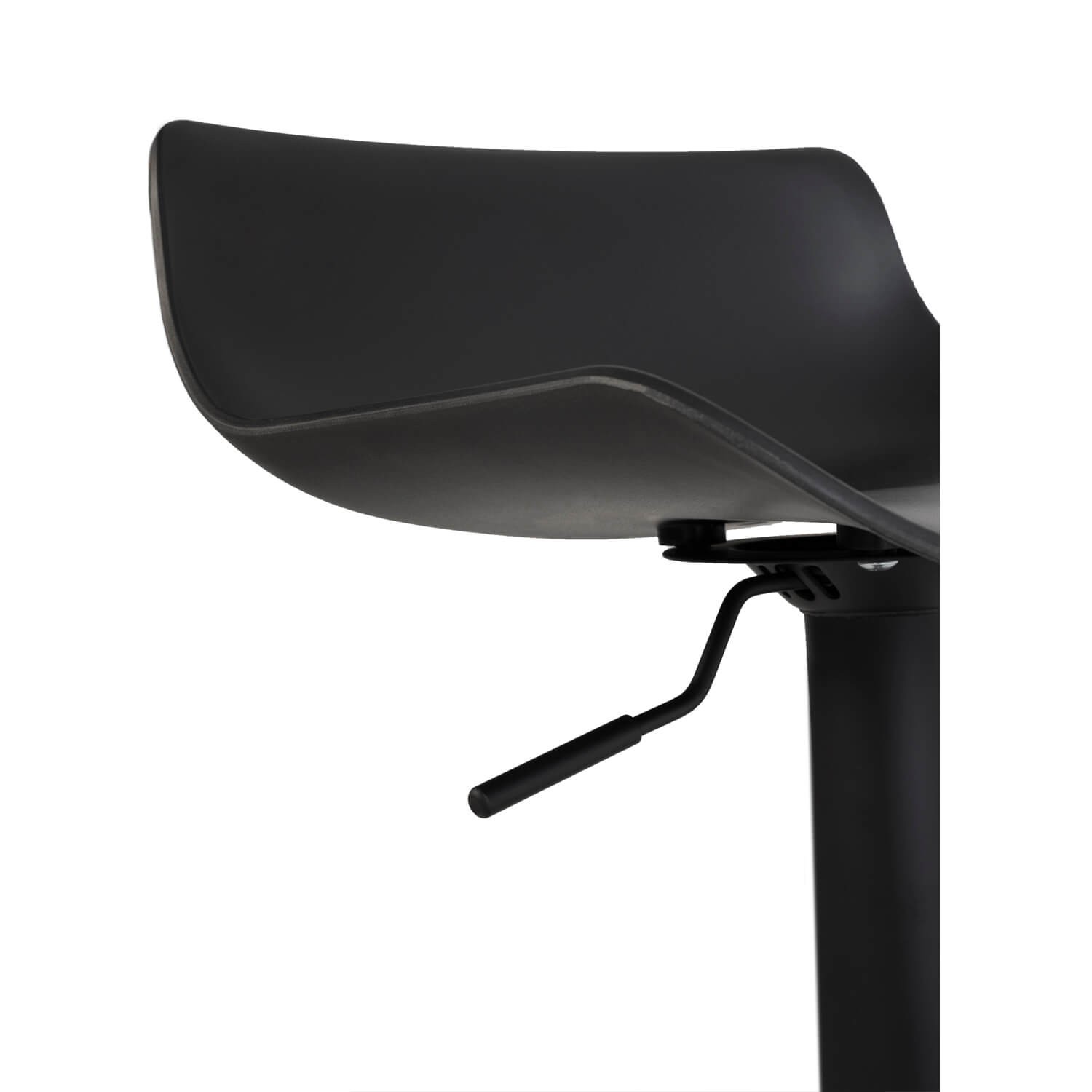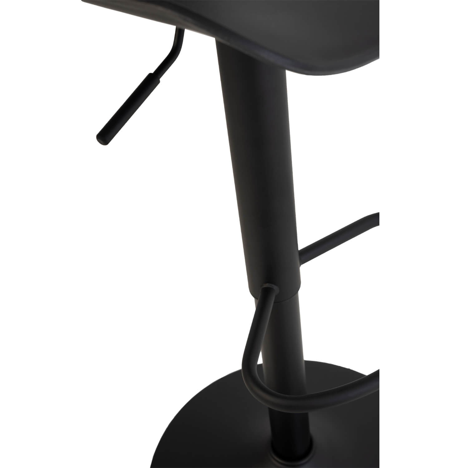 Su diseño está acabado exclusivamente en color negro, aunque diferenciamos dos materiales distintos: por un lado, el asiento, realizado en polipropileno, un tipo de plástico de alta calidad, mientras que la estructura, para conseguir mayor resistencia ha sido diseñada en metal. La medida de altura del asiento va desde los 56 cm hasta los 77,5 cm.