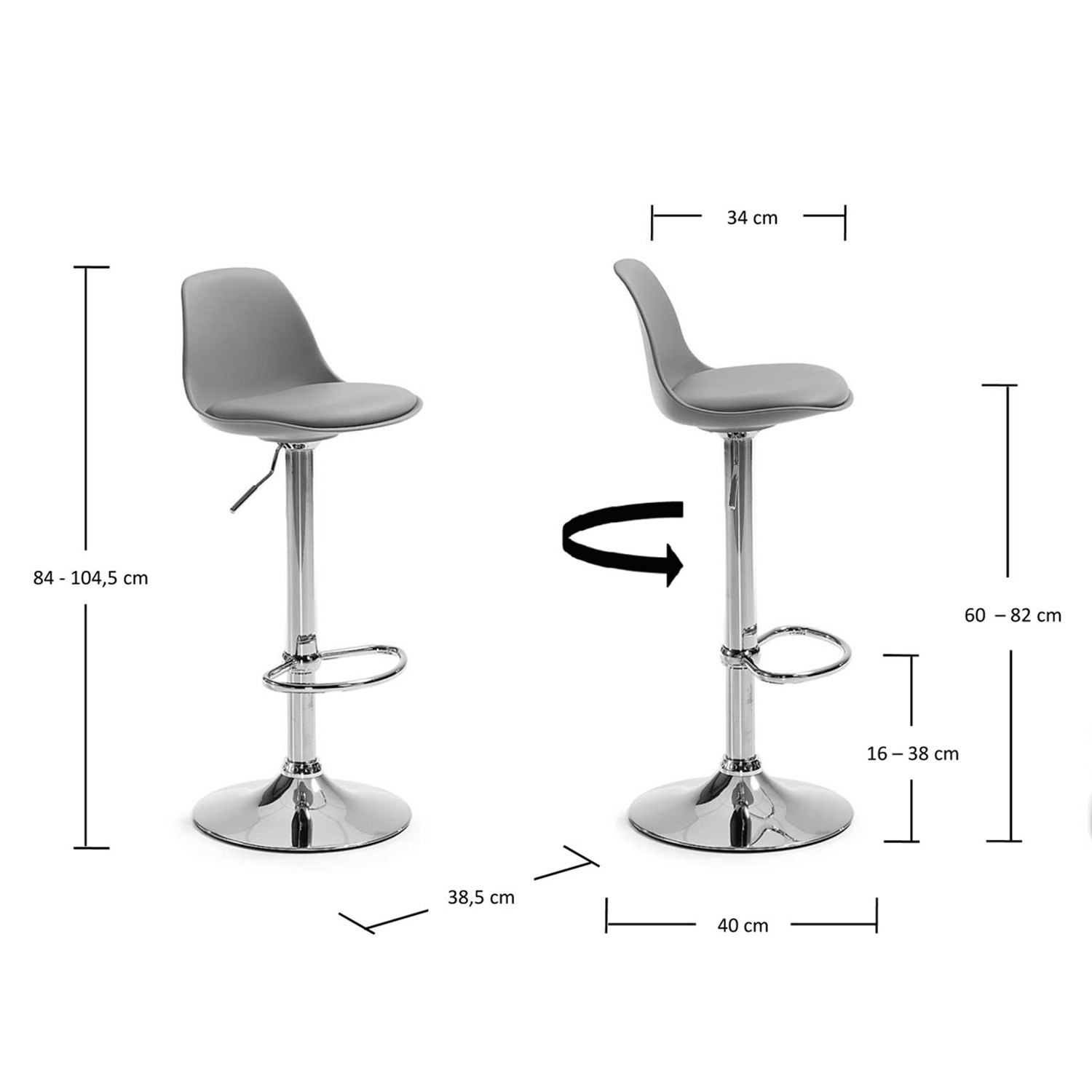 Taburete alto ORLANDO FLAK en color gris con sistema giratorio y regulable en altura mediante pistón de gas. Medidas: Medida alto: 84-104 cm. Medida ancho: 38,5 cm. Medida profundo: 40 cm.