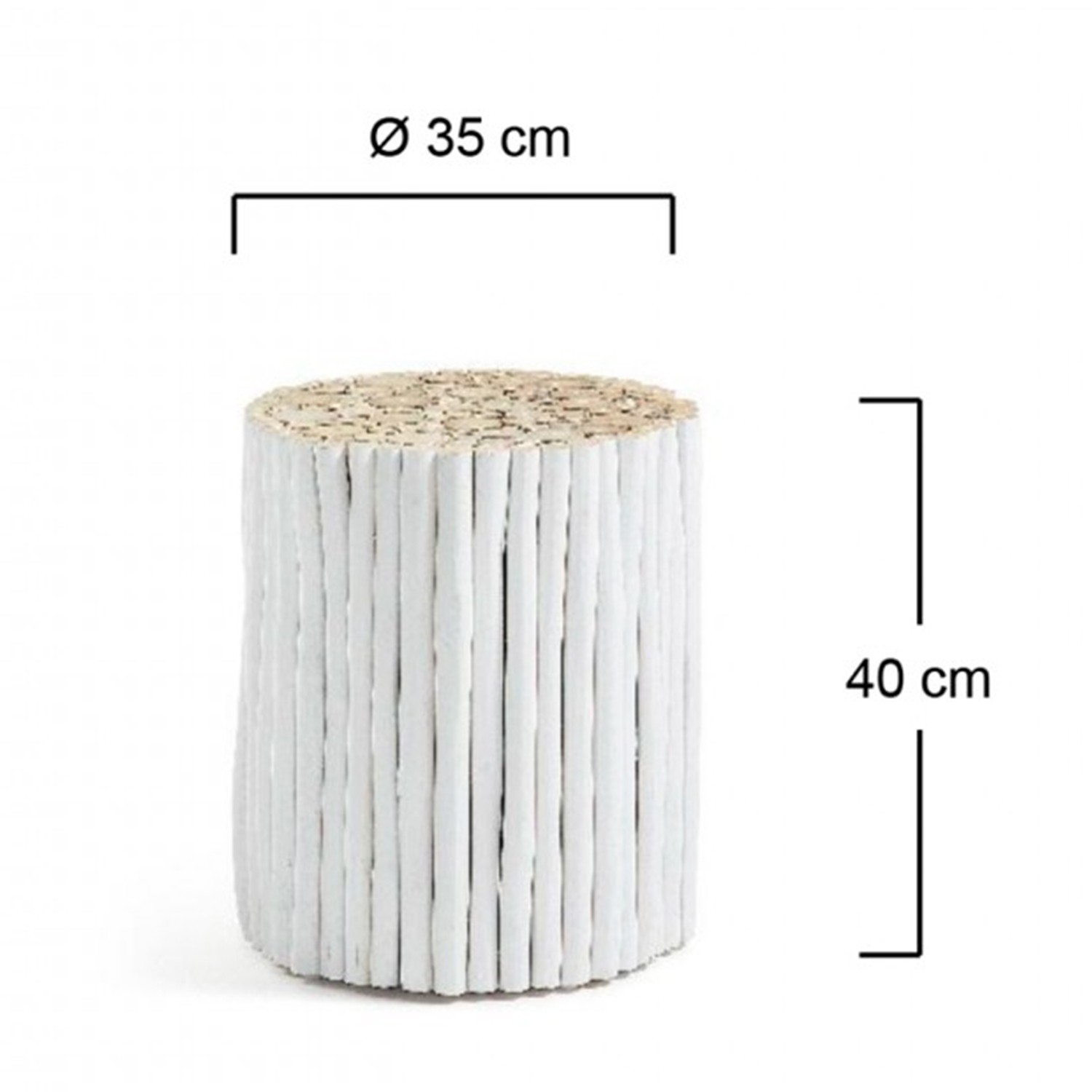 Polivalente ya que originalmente su uso está pensado para convertirse en un taburete reposapiés, pero, en un momento dado, puedes utilizarlo incluso como mesa auxiliar. Su diseño es muy original, ya que son la unión de ramas hechas en madera de teca maciza acabada en color blanco.